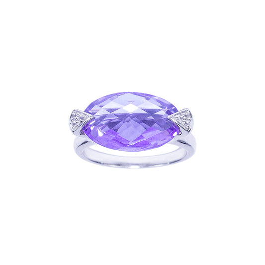 Sterling Silver Amethyst And White Topaz Oval Ring
