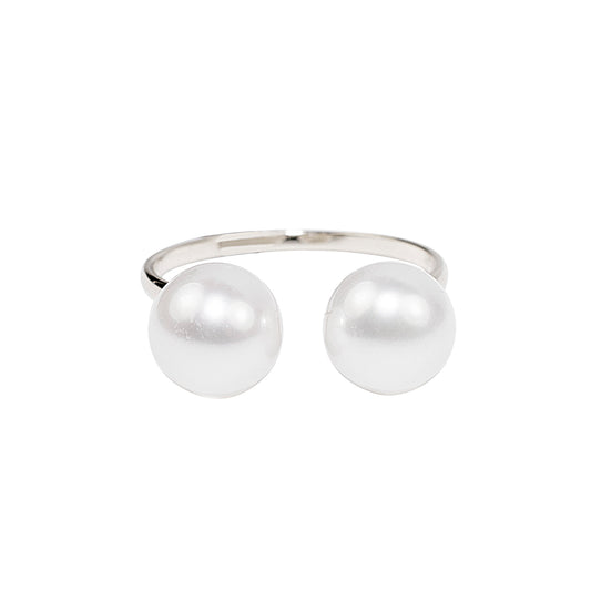 14k White Gold White Pearl Open Ring