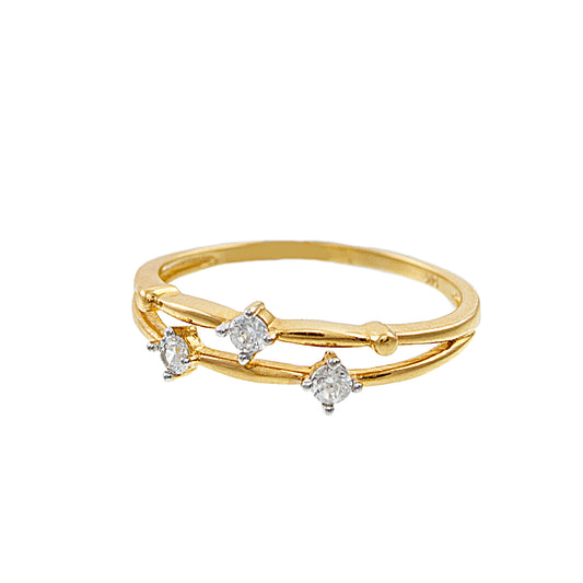 14k Double Band Three Cubic Zirconia Ring
