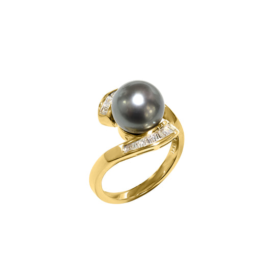 14k Black Tahitian South Sea Pearl Diamond Ring