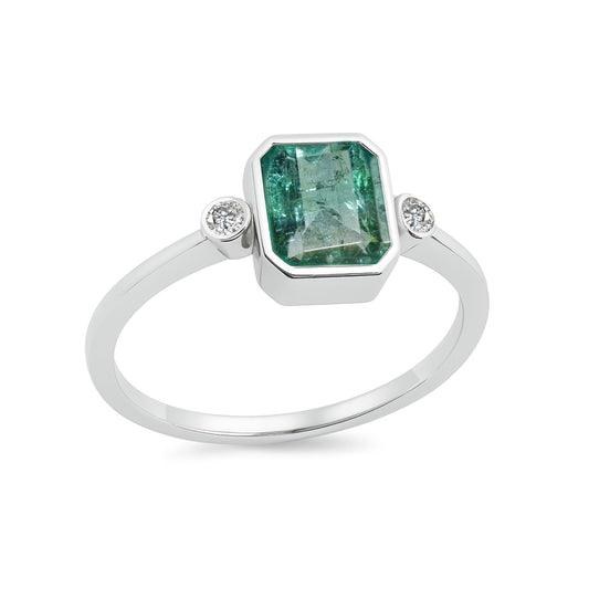 14k White Gold Emerald Diamond Rectangle Bezel Ring
