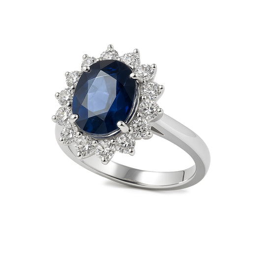 18k White Gold Sapphire Diamond Oval Cut Ring