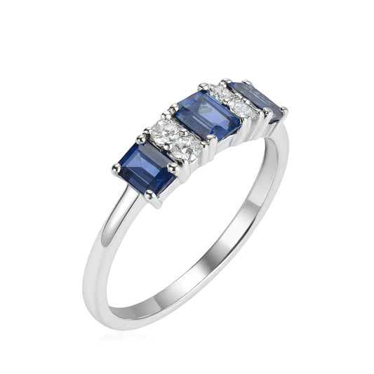 14k White Gold Sapphire Diamond Multi Stone Ring