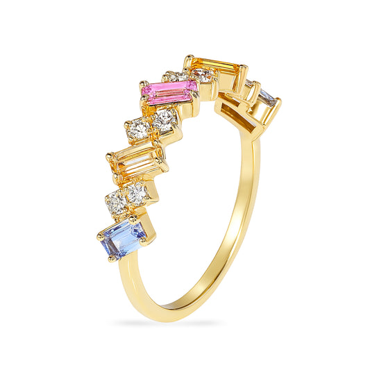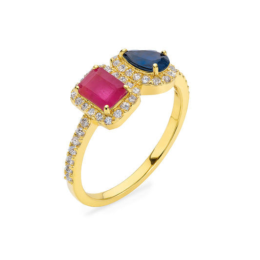 14k Ruby Sapphire Diamond Pear and Rectangle Ring