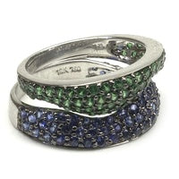 18KW GREEN GARNET BLUE SAPPHIRE STACK RING SET