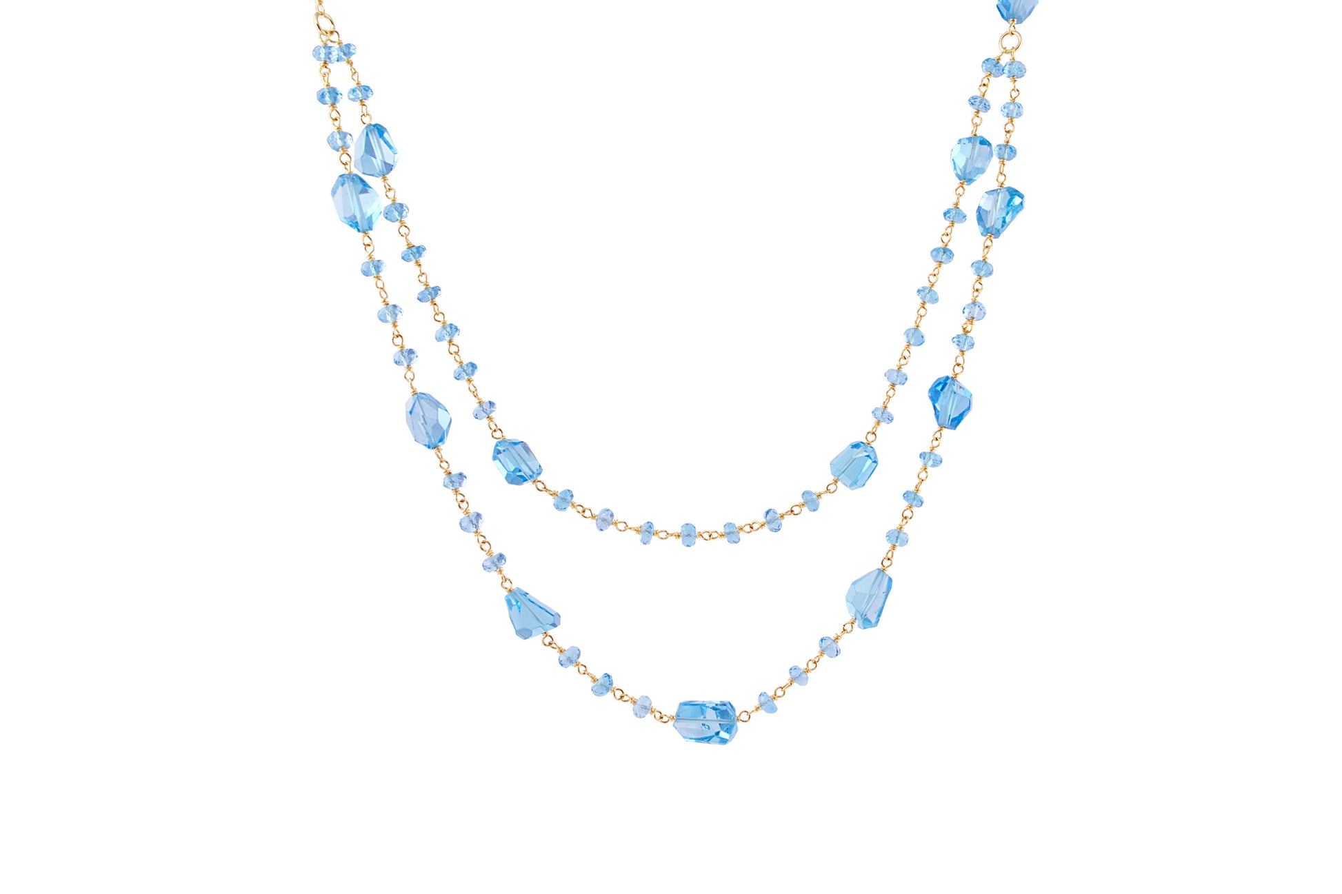 14KY HANDCUT SWISS BLUE TOPAZ NUGGET BEAD NECKLACE