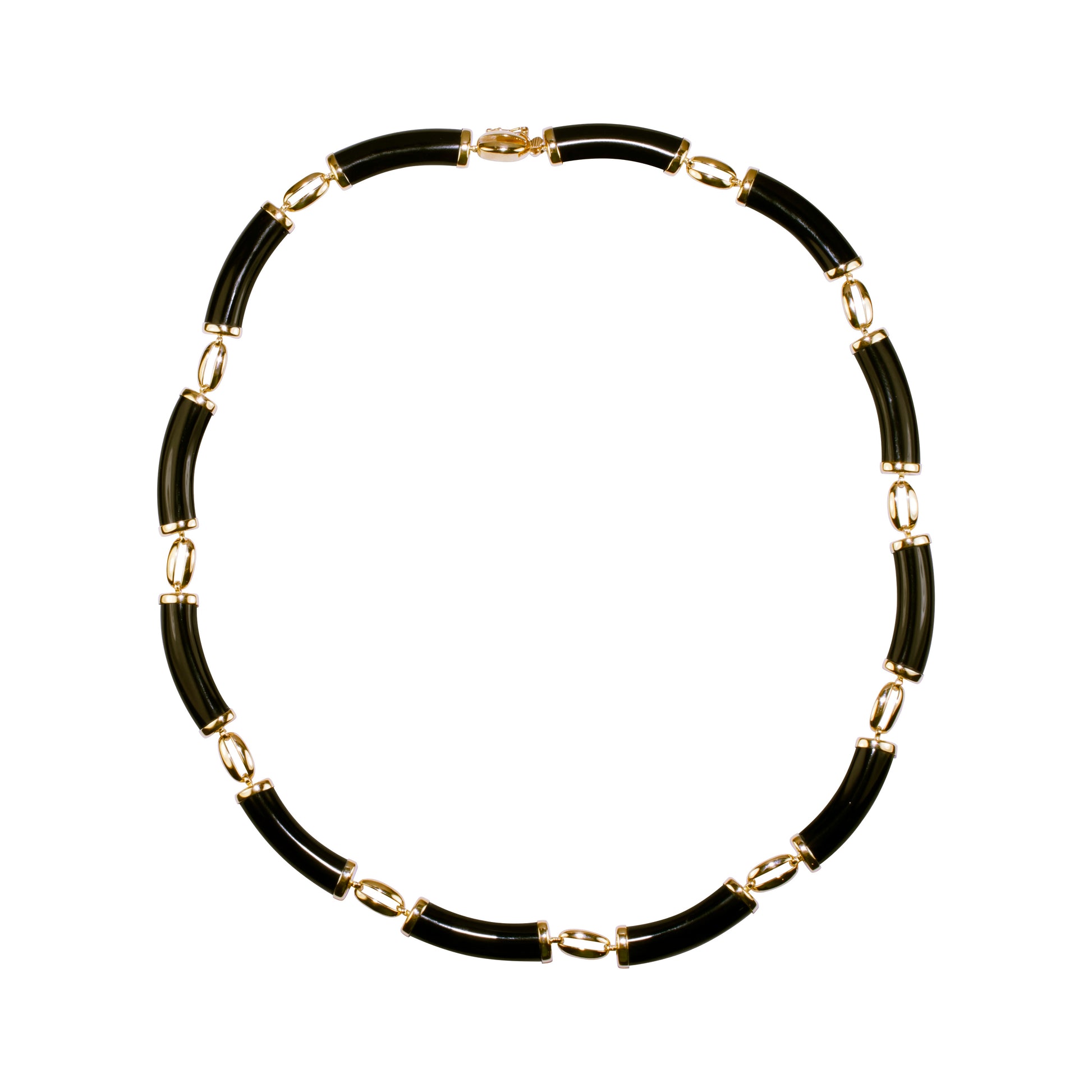 Elevate your style with our 14k Black Onyx Curved Station Necklace! Made with luxurious and durable 14k gold, this necklace features stunning black onyx stones that will add a touch of sophistication to any outfit. Perfect for any occasion, this necklace will make you stand out and feel confident.