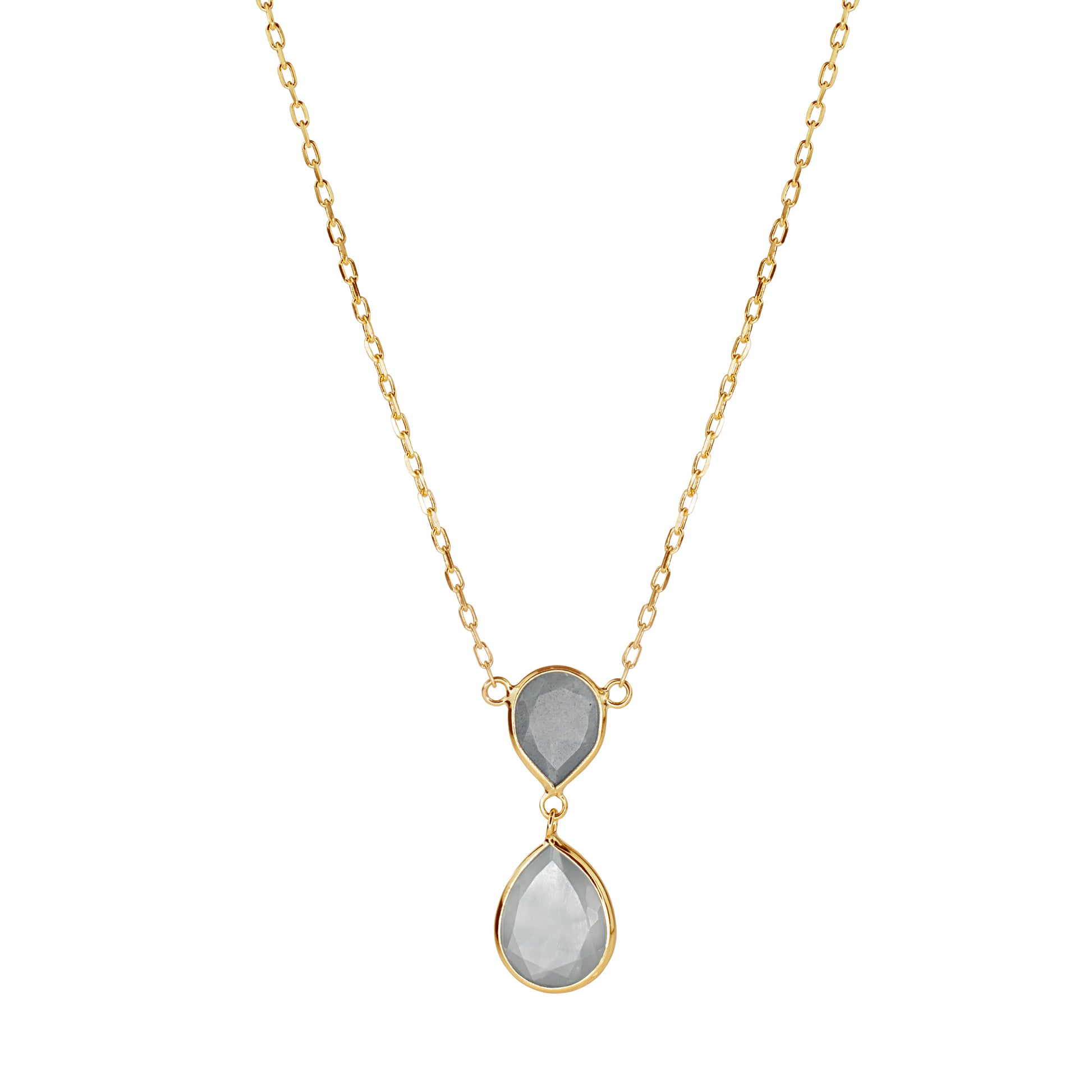 14KY GREY MOONSTONE DOUBLE PEAR BEZEL PEND NECK 17"