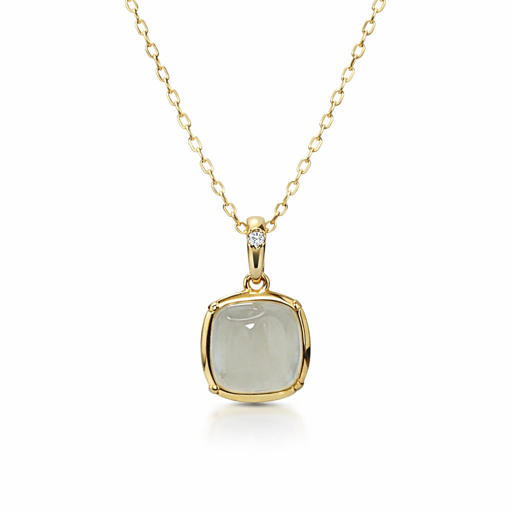 14KY GREY MOONSTONE 2.54CT DIA 0.02CT PEND NECKLACE 17"