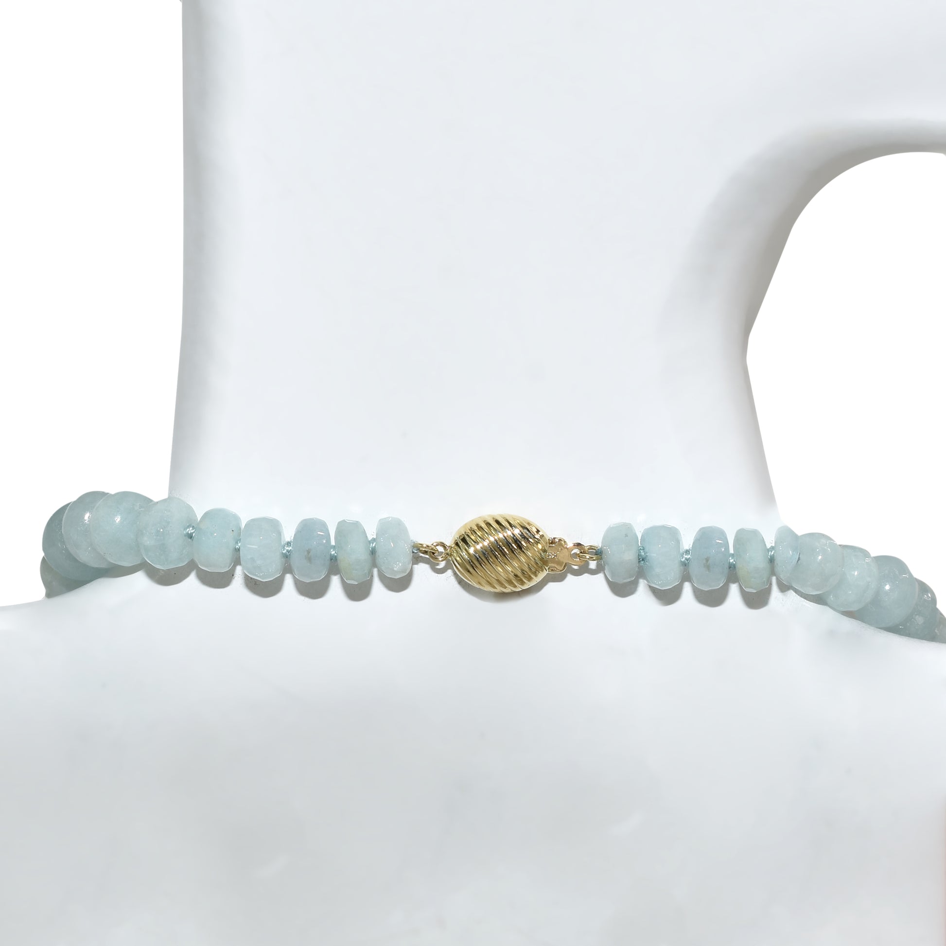 14k Aquamarine Faceted Roundel Knotted Necklace