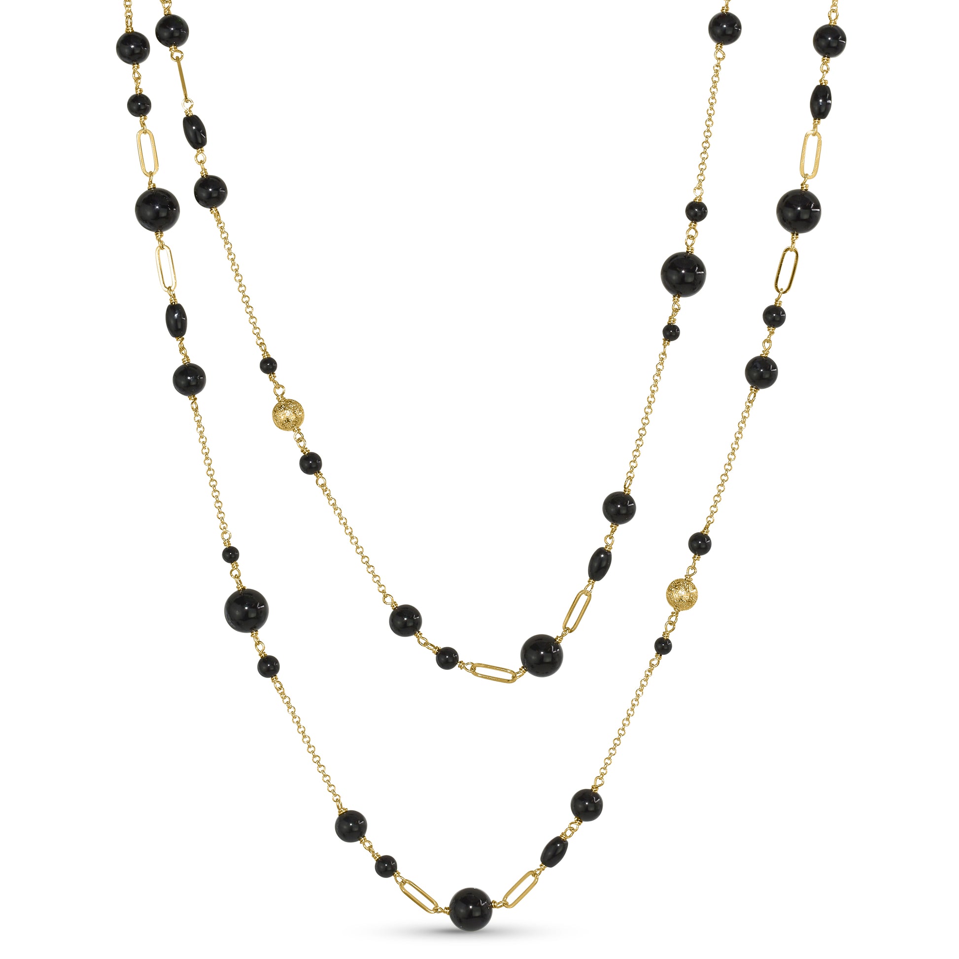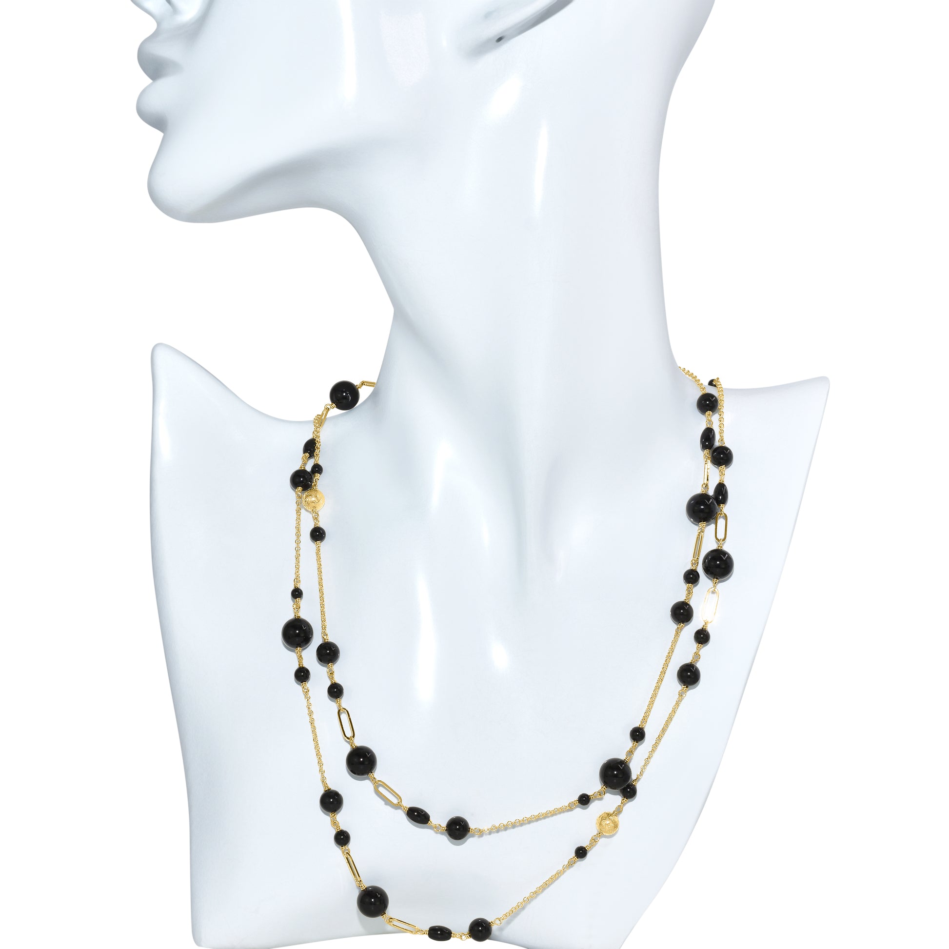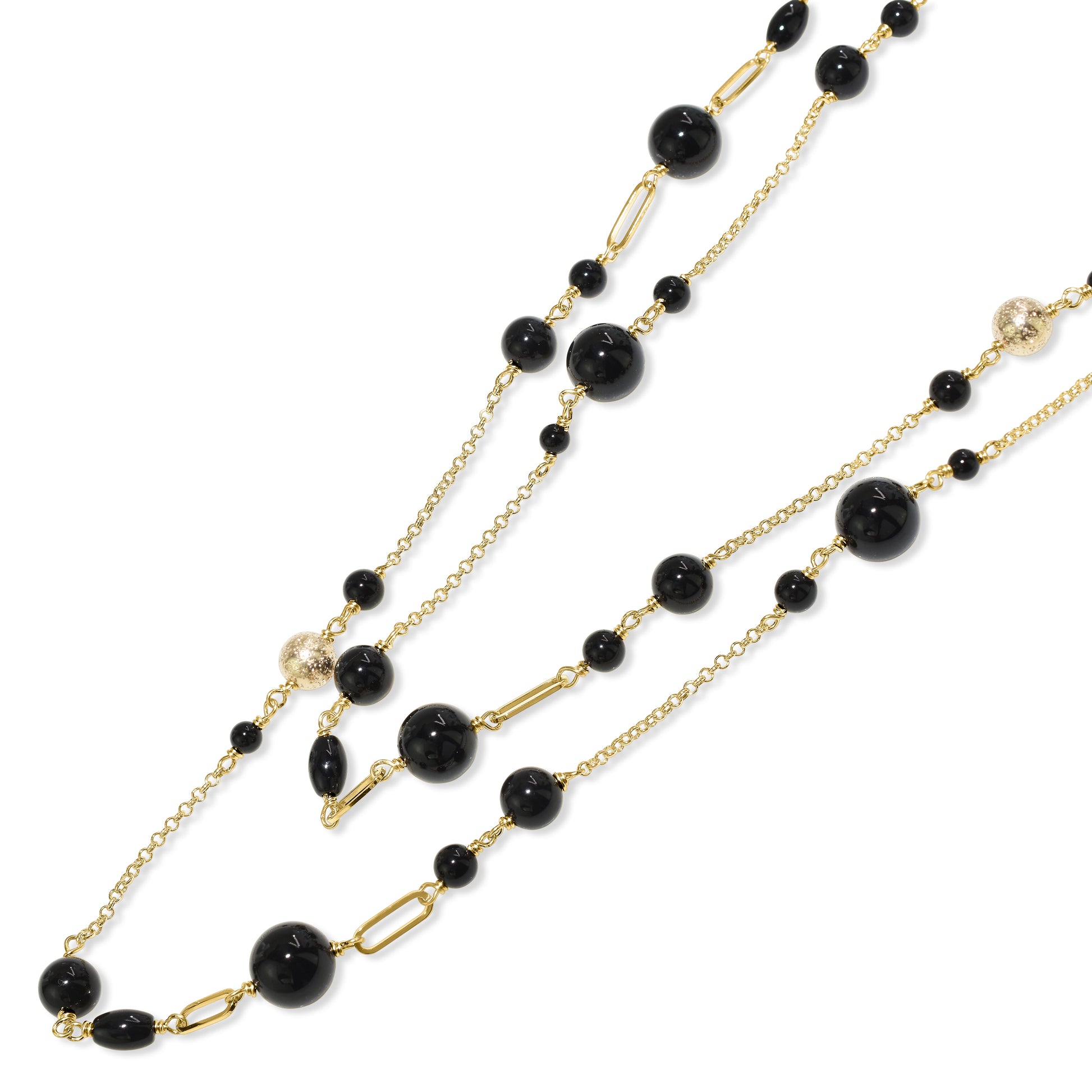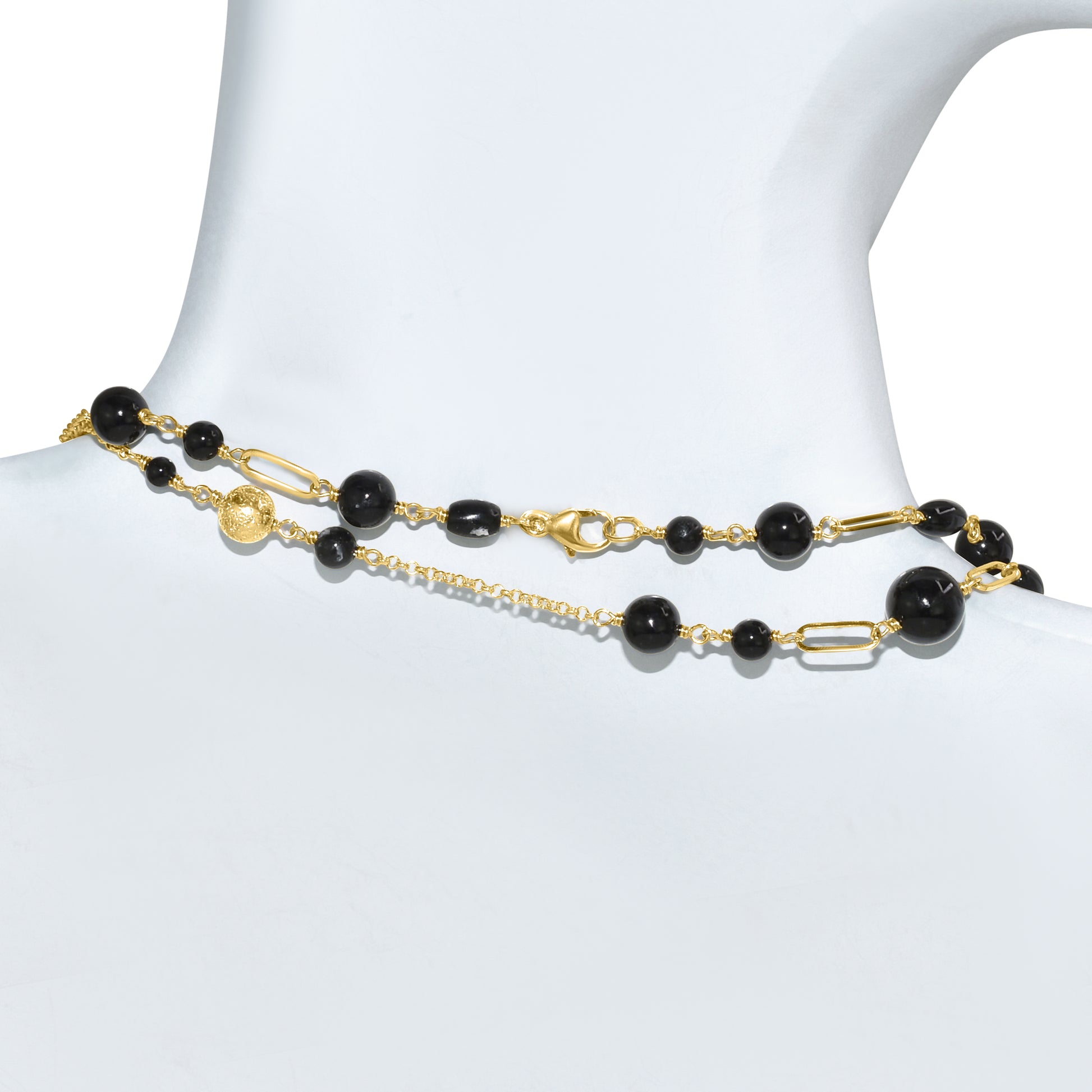 14k Black Onyx Paperclip Gold Ball Station Necklace