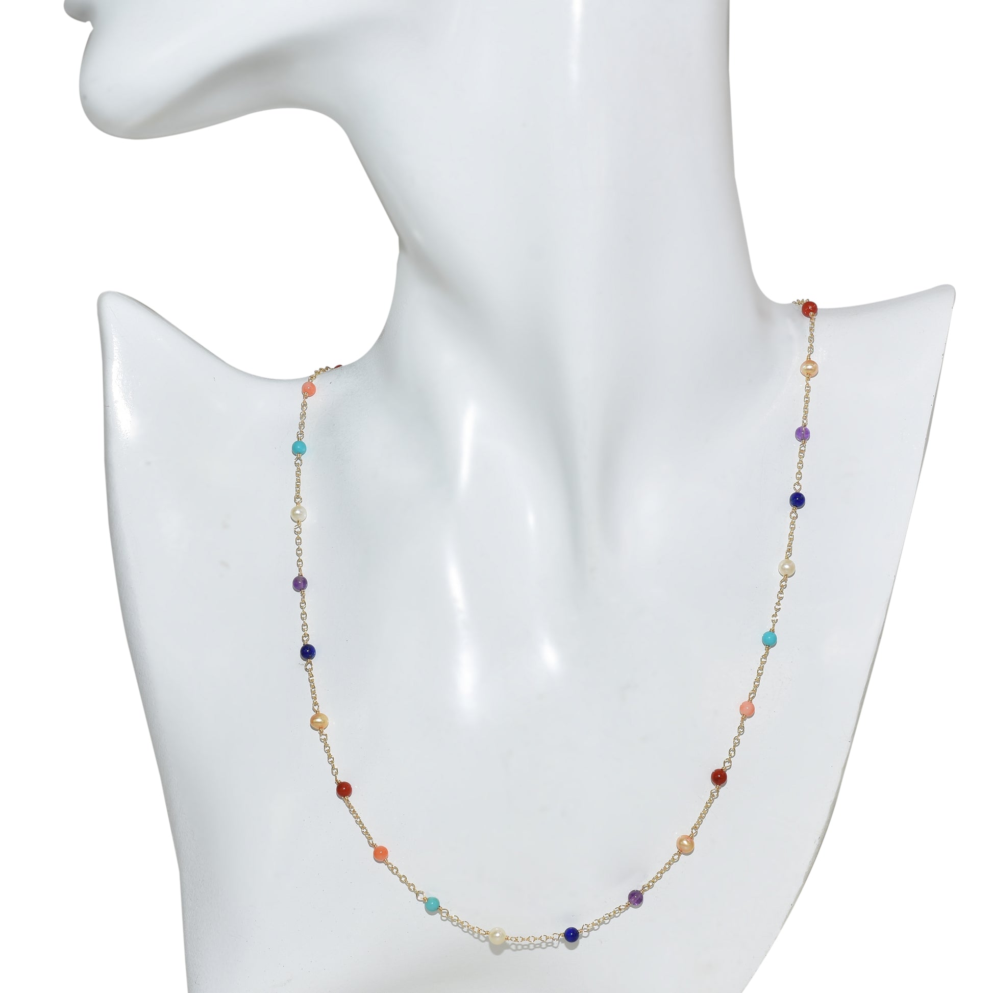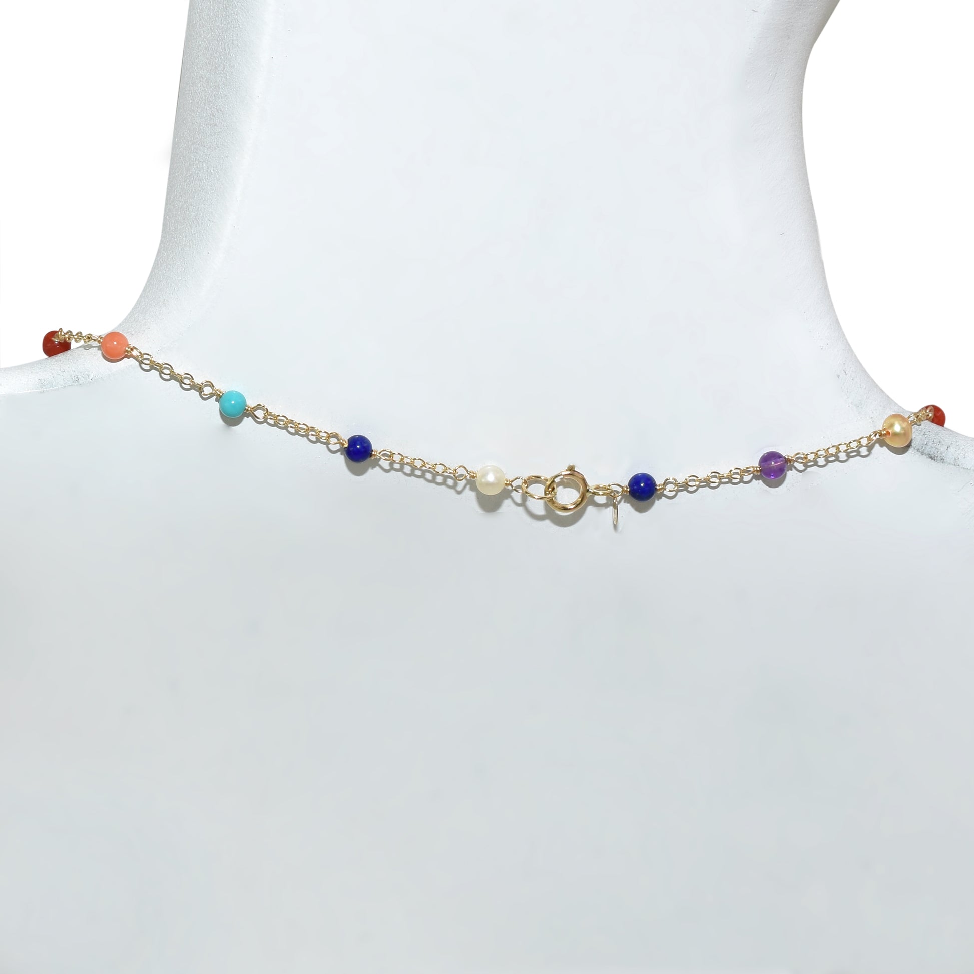 Highlight your unique style with our 14k yellow Gemstone Station Necklace. Made with exquisite gemstones set in 14k yellow gold, this necklace is a statement piece that adds a touch of elegance to any outfit. Perfect for any occasion, it's a must-have for any fashion-forward individual.