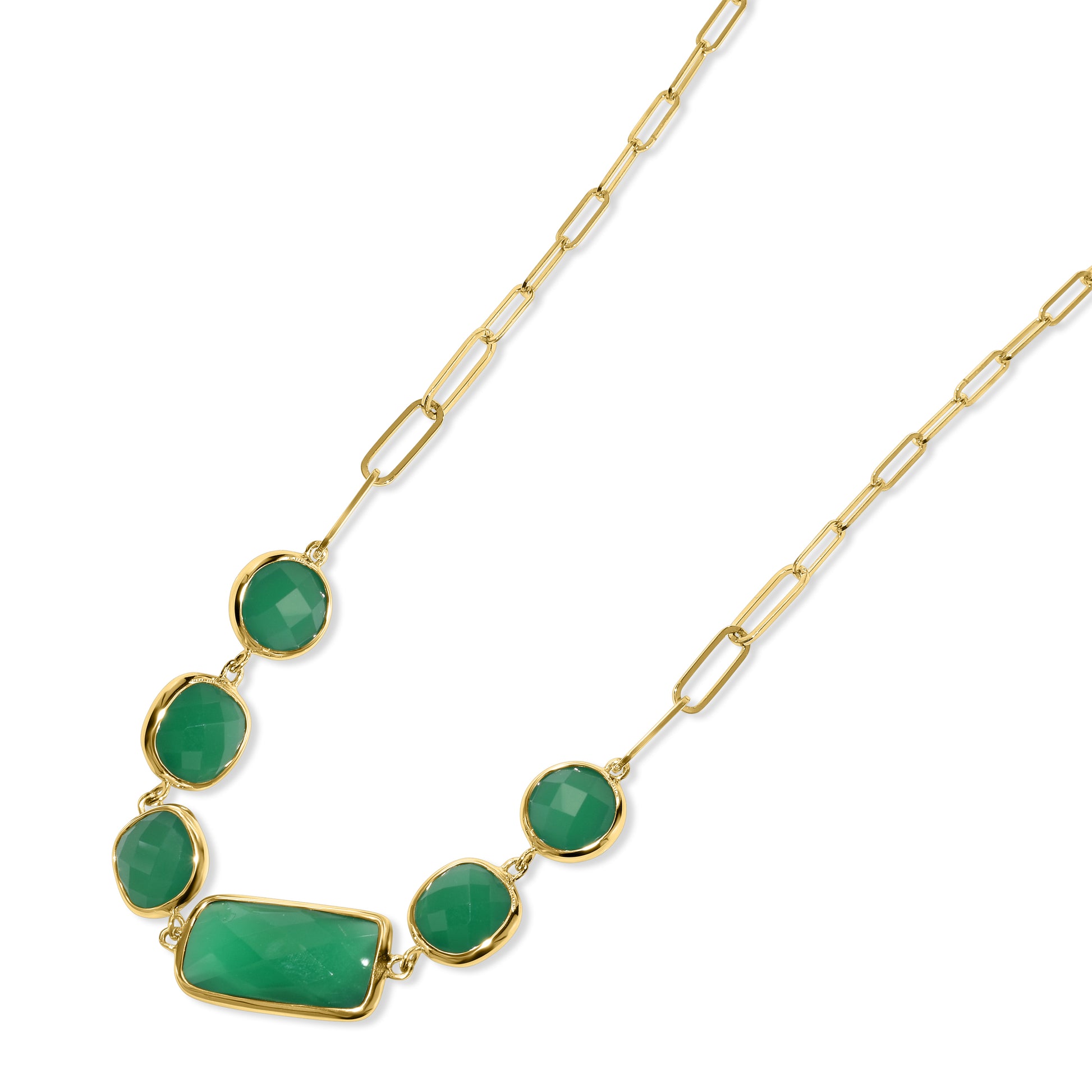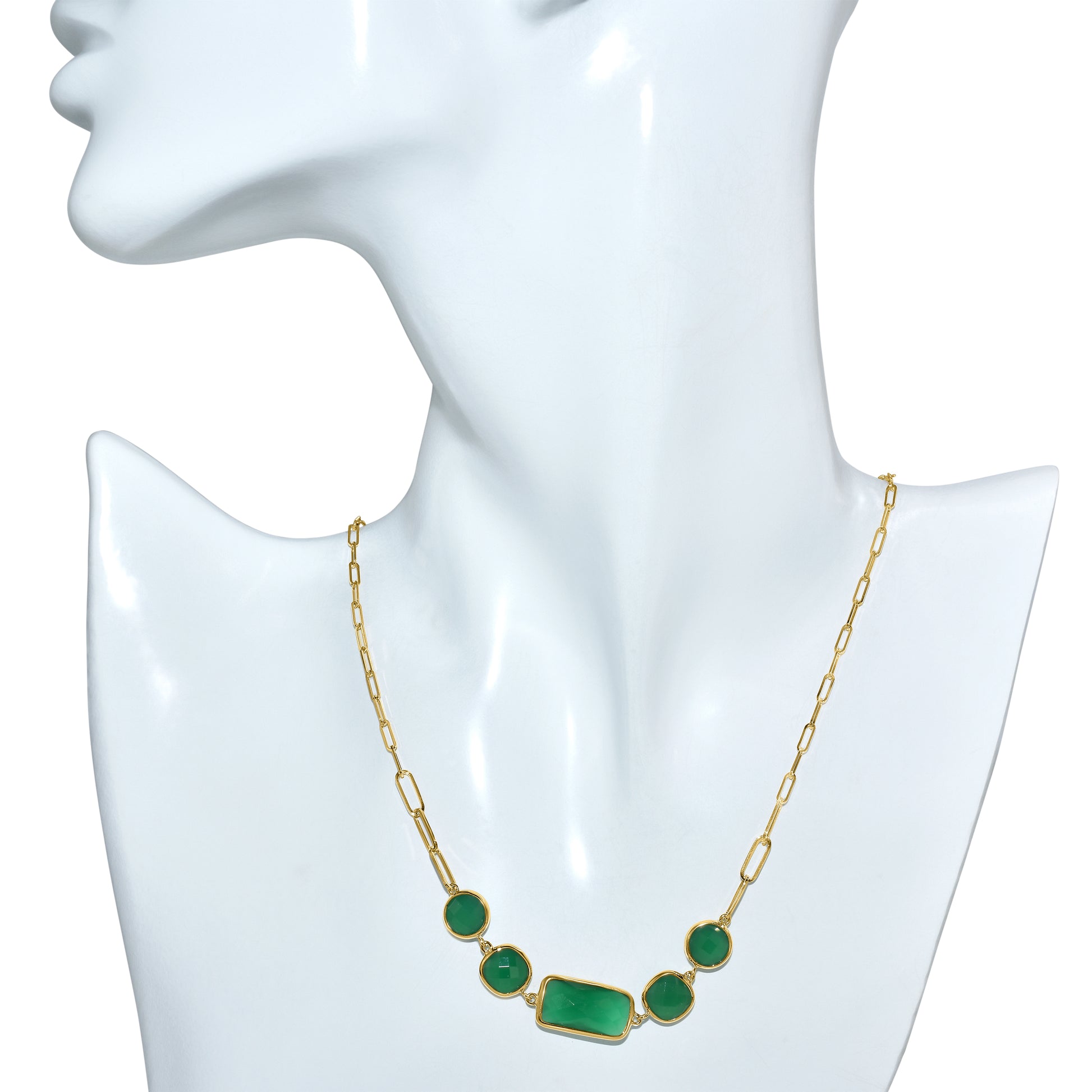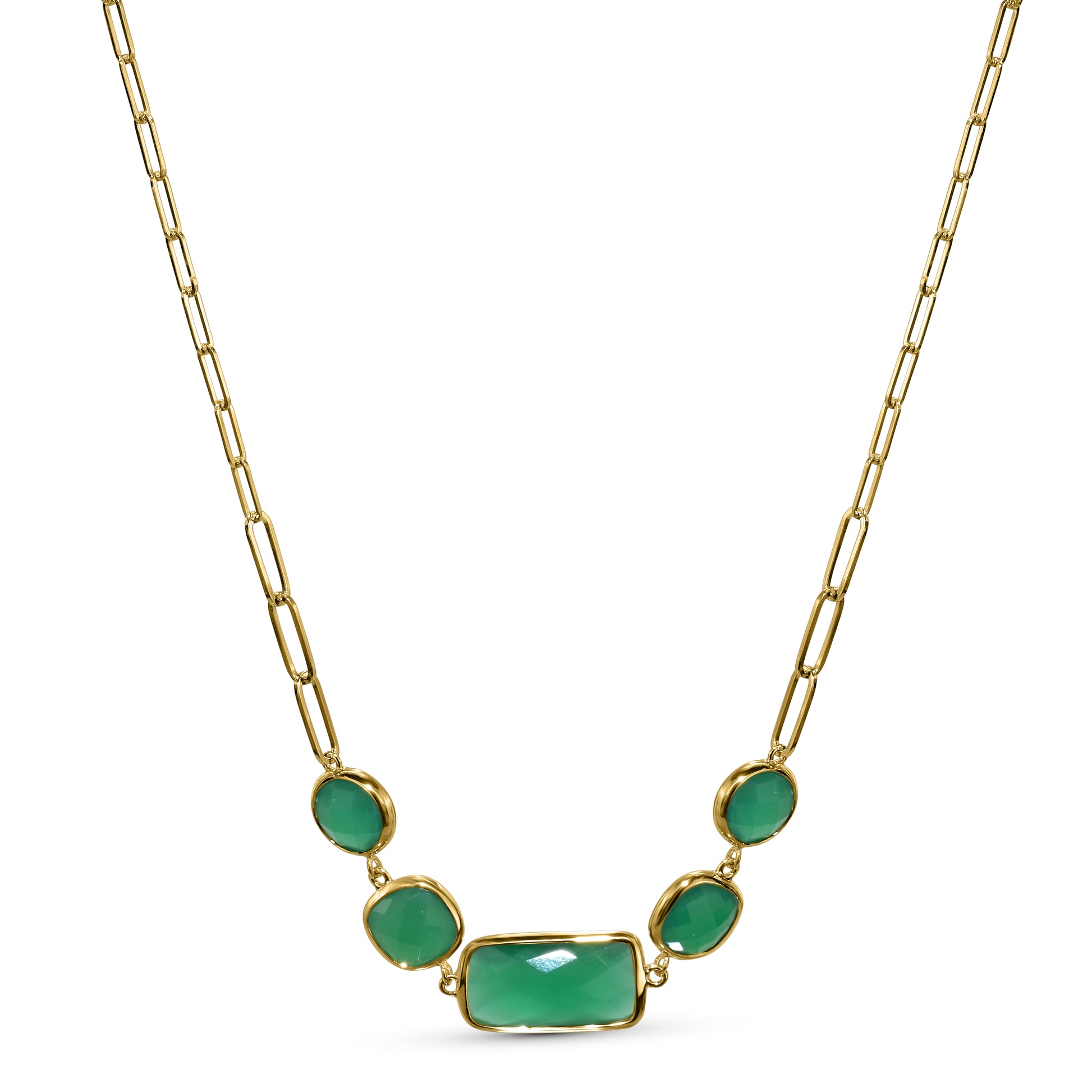 Experience the elegance and beauty of our 14k Green Onyx 5 Bezel Necklace. Crafted with the highest quality materials, this necklace features stunning green onyx stones set in delicate bezels. Elevate any outfit and exude sophistication with this timeless piece.