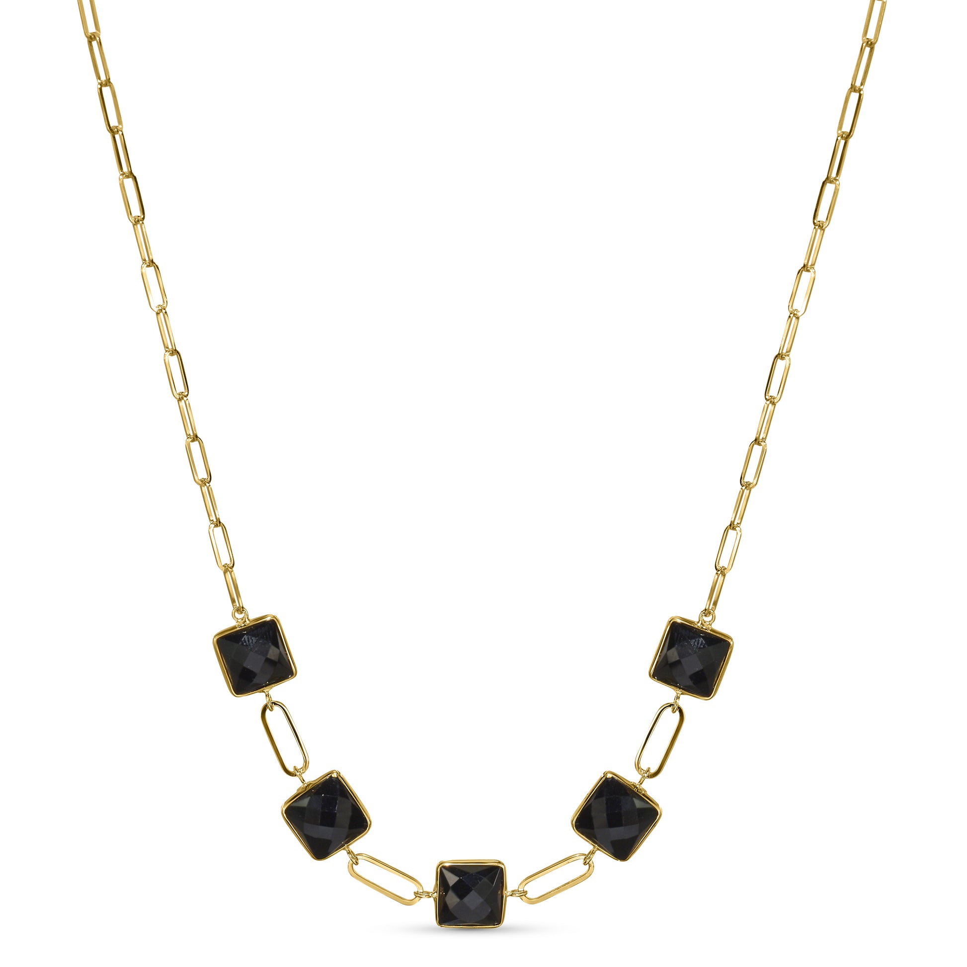 14k Black Onyx 5 Square Bezel Necklace