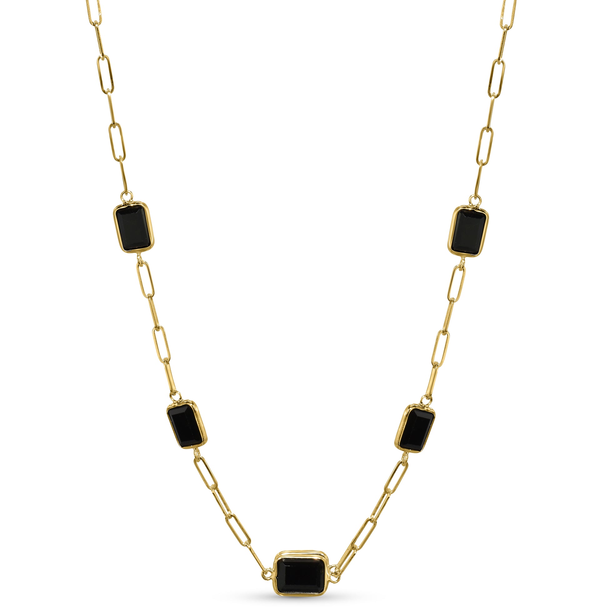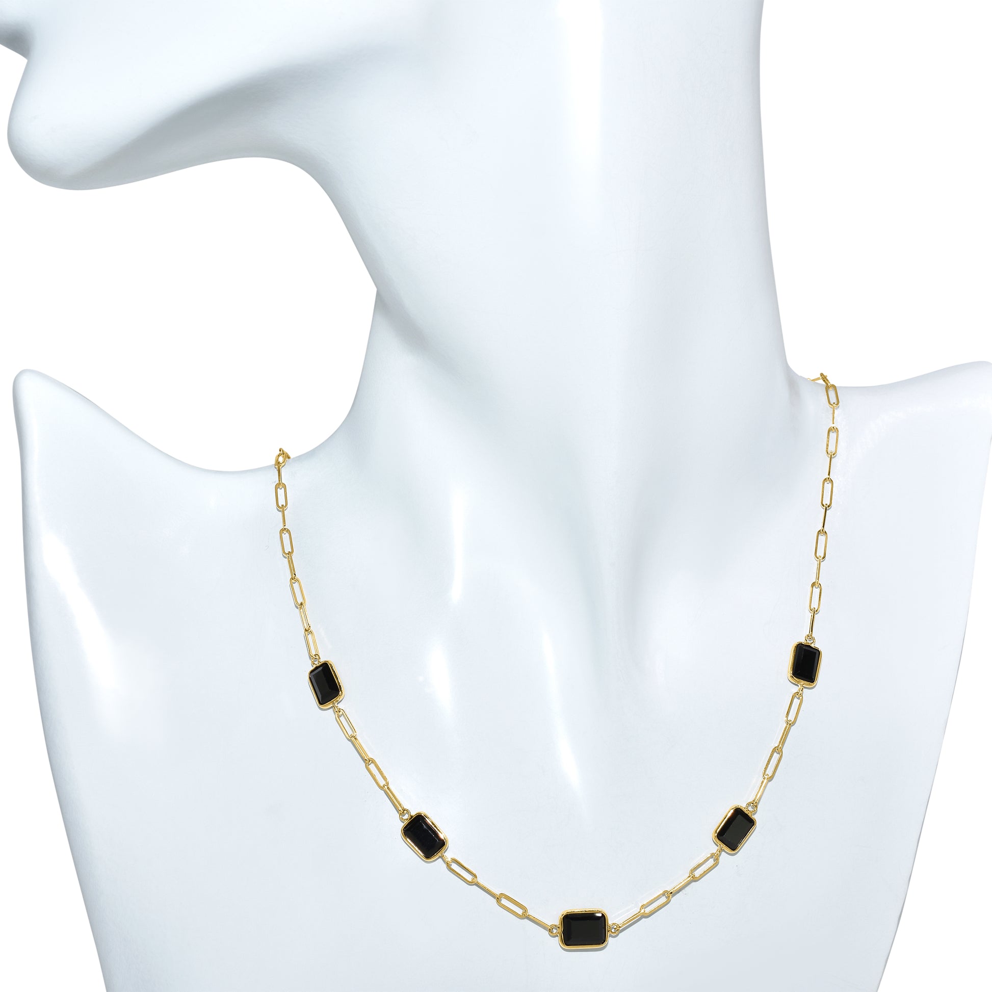 Adorn yourself with elegance and style with our 14k Black Onyx 5 Bezel Station Necklace. Crafted with genuine black onyx and delicate 14k gold, this necklace features 5 bezel-set stones that add a touch of sophistication to any outfit. Elevate your look with this timeless and versatile piece.