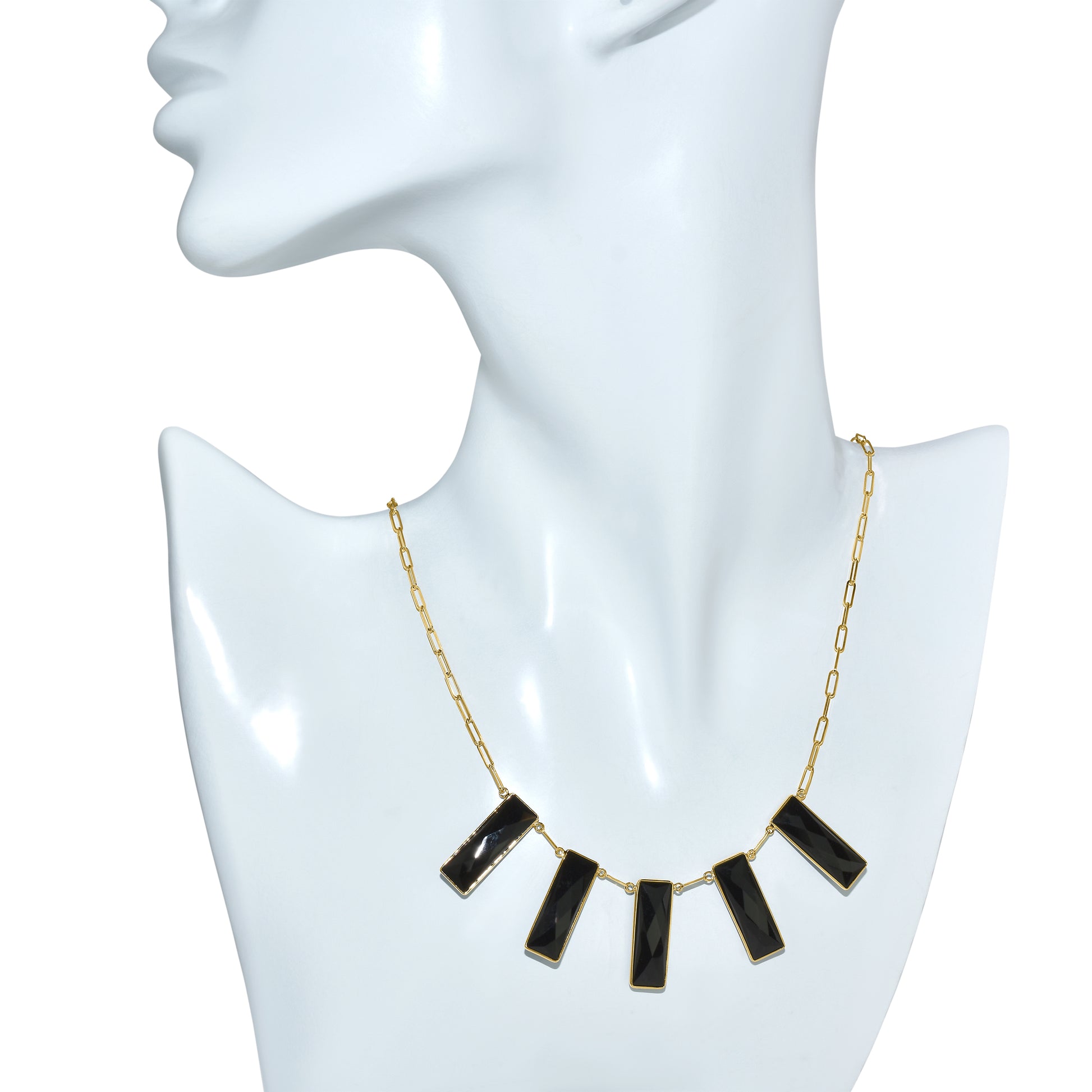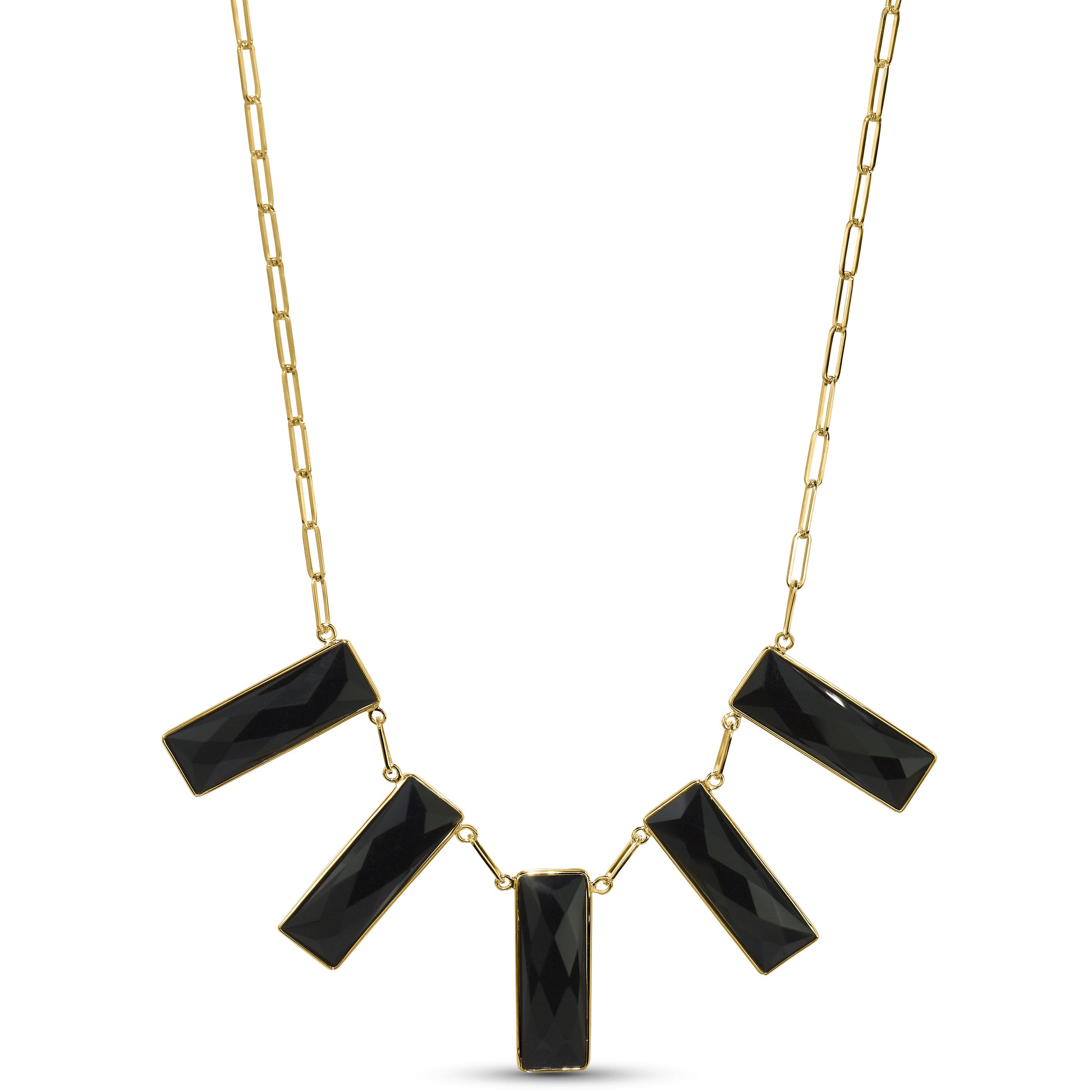14k Black Onyx 5 Rectangle Bezel Paperclip Necklace