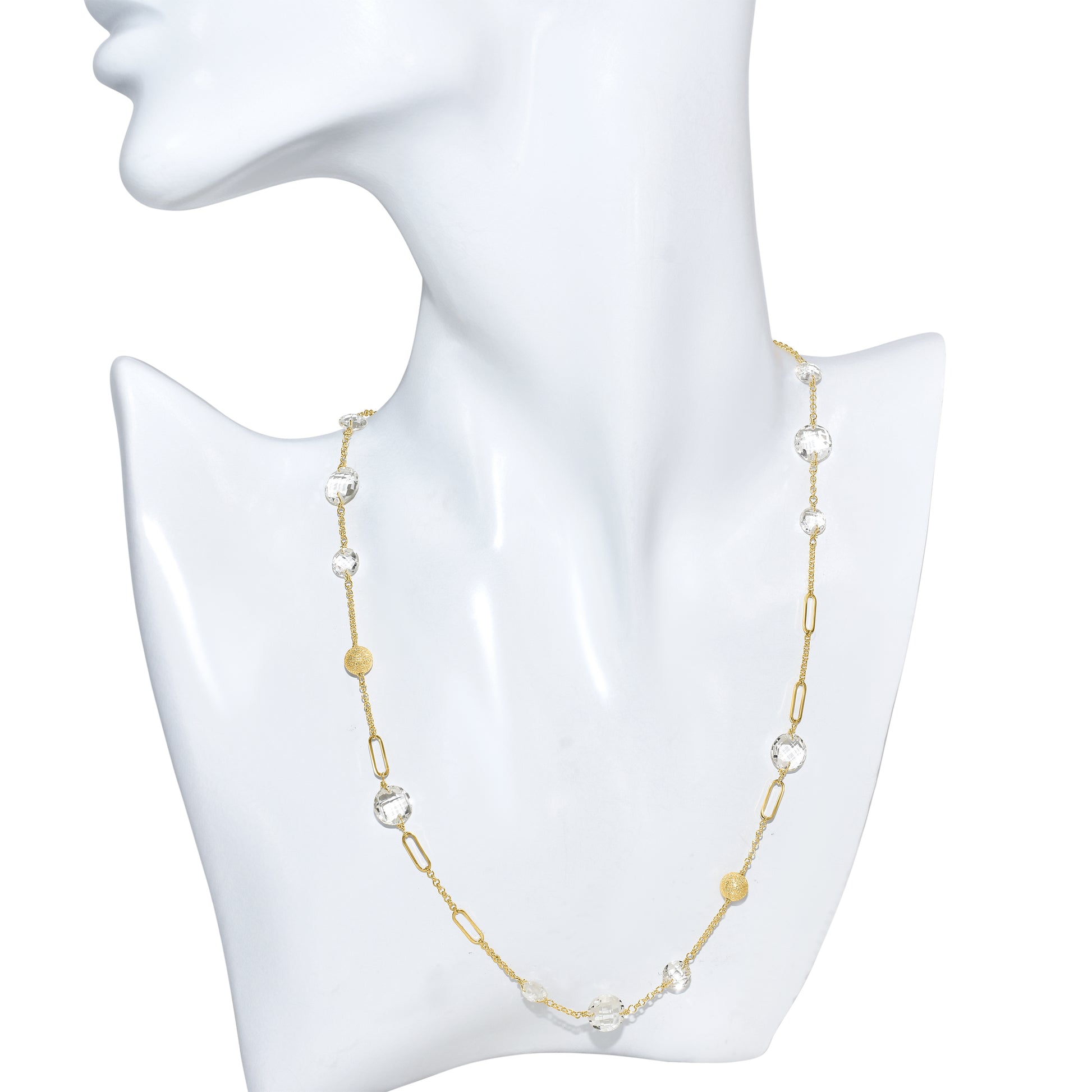 Elevate your style with the 14k White Topaz Coin Fancy Station Necklace. Crafted in luminous 14k white gold, this necklace features sparkling white topaz coins delicately spaced along the chain, adding a touch of elegance and sophistication to any outfit. Perfect for both everyday wear and special occasions, it effortlessly enhances your look with subtle brilliance and timeless charm.