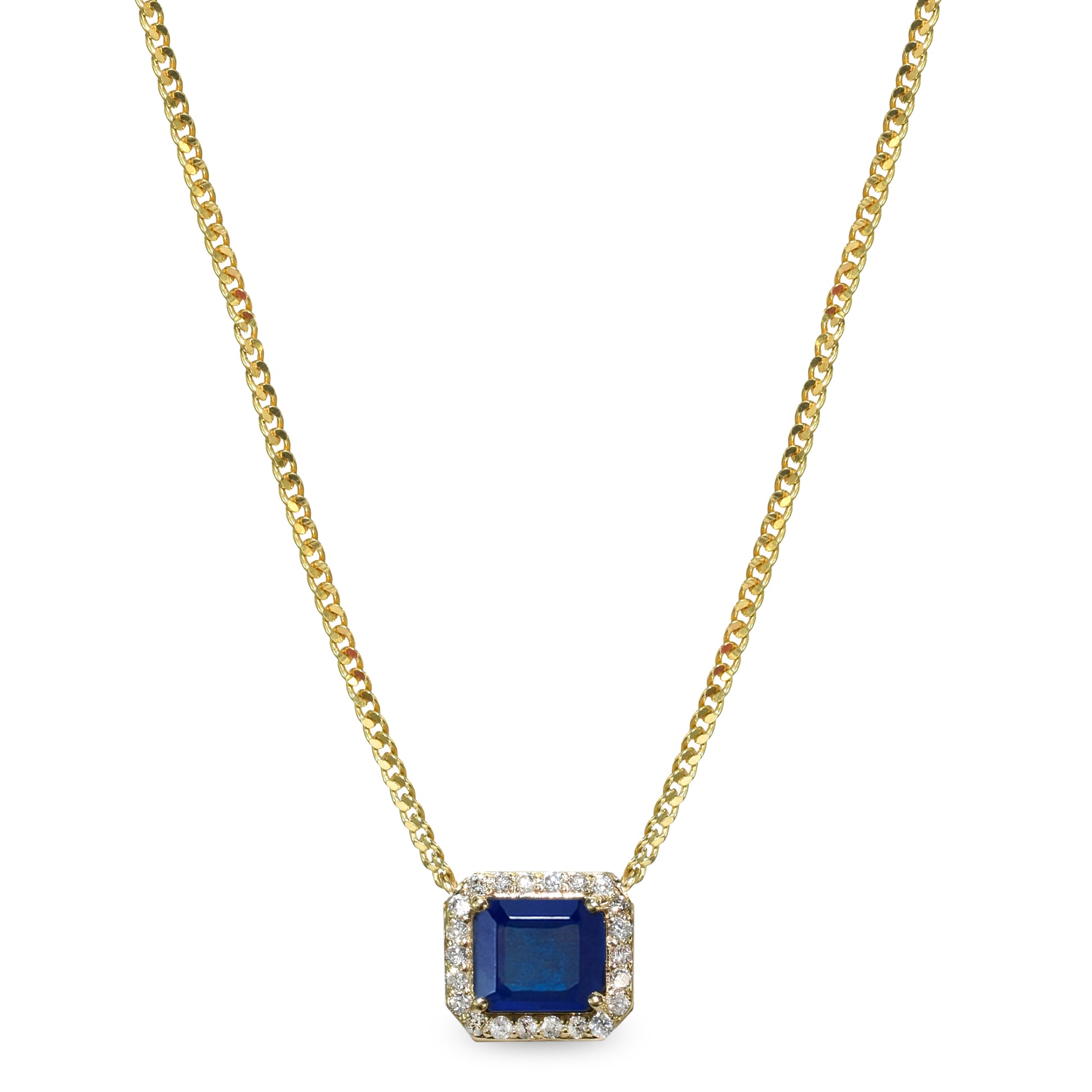 Elevate your elegance with this 14k gold necklace featuring a stunning emerald-cut sapphire framed by sparkling diamonds. Its timeless design highlights the deep blue sapphire’s brilliance, while the diamonds add dazzling contrast, making it perfect for special occasions or daily luxury. Crafted to catch every eye, this necklace offers both sophistication and a lasting statement of refined style.
