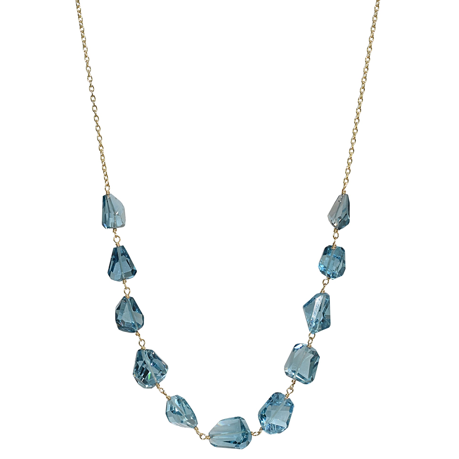 14k London Blue Topaz Nugget Link Front Necklace