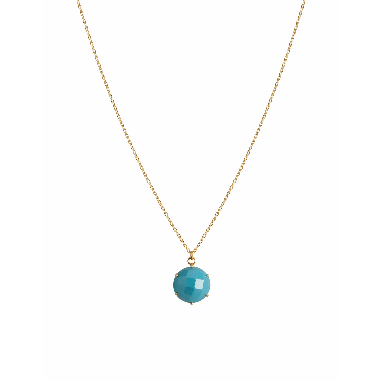 14KY FACETED TURQUOISE PENDANT NECKLACE 17" 12MM 5.4CTS