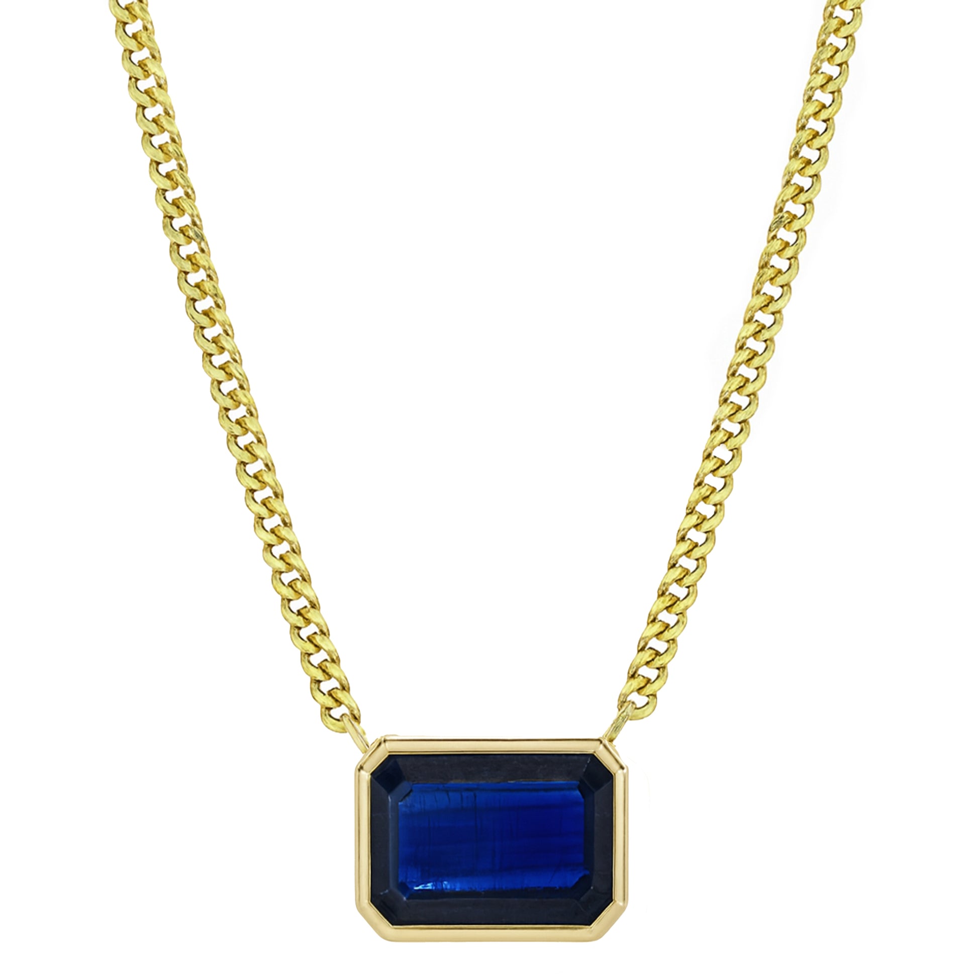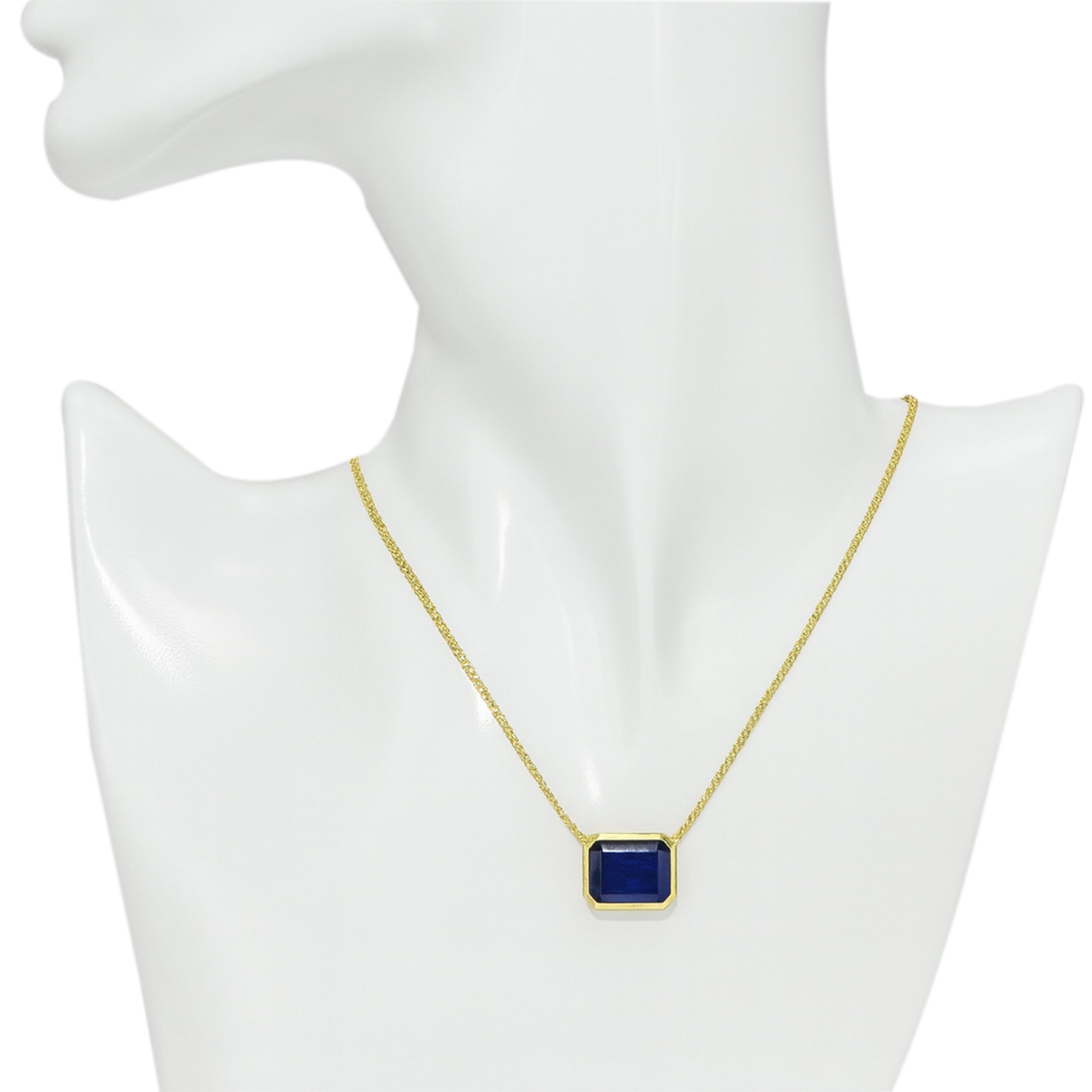 Elevate your elegance with this 14k gold necklace featuring a stunning sapphire cut into a sleek rectangle and securely framed in a bezel setting. Its timeless design complements any outfit, while the rich blue sapphire adds a touch of refined luxury. Perfect for daily wear or special occasions, this necklace is a graceful statement of style and sophistication.