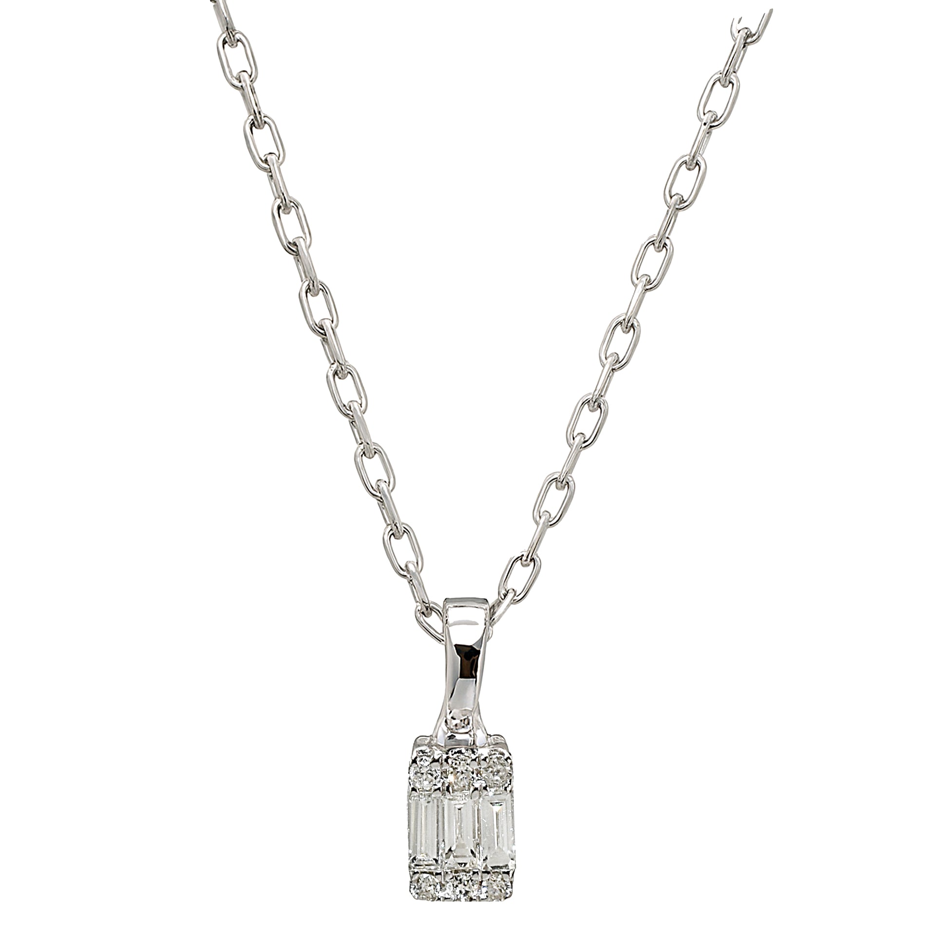 Elevate your elegance with this 14k white gold necklace featuring a stunning rectangle cut diamond. Its sleek design highlights the diamond’s brilliance, making it the perfect accessory to add timeless sparkle to any outfit. Whether for everyday wear or special occasions, this necklace offers both sophistication and versatility, ensuring you shine with confidence wherever you go.