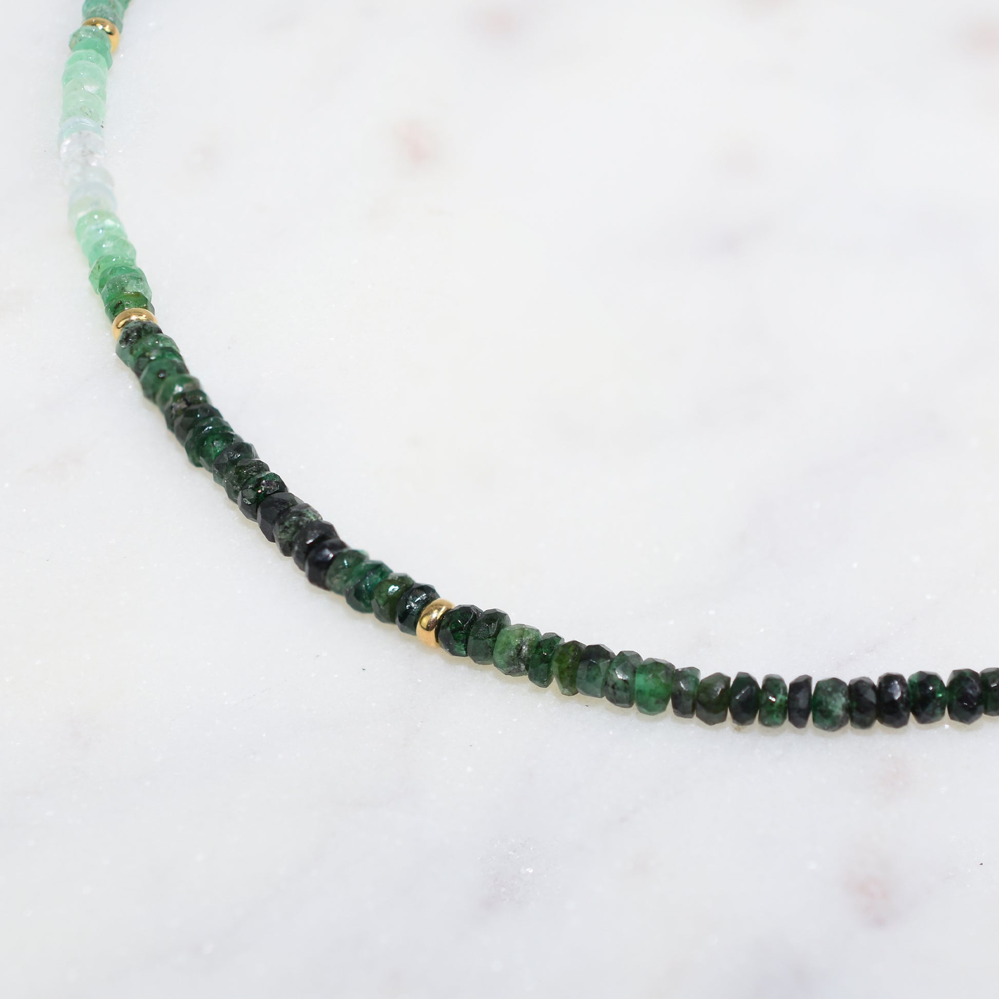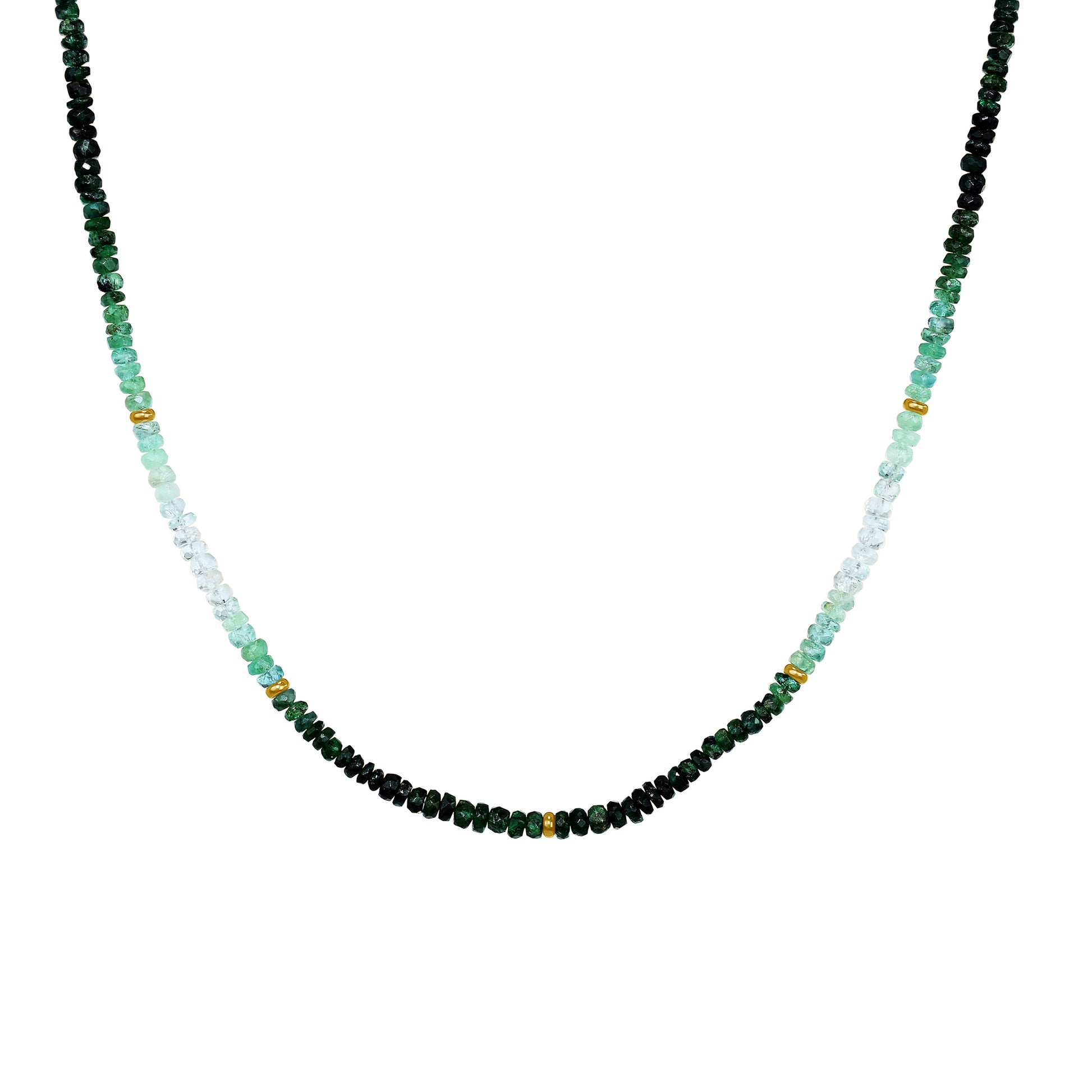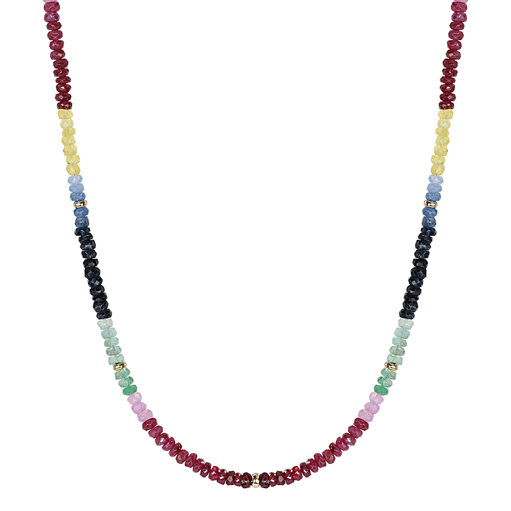 - High-polished 14-karat yellow gold necklace perfectly set with gemstones and gold roundels. Sensitive-skin friendly and won't tarnish.