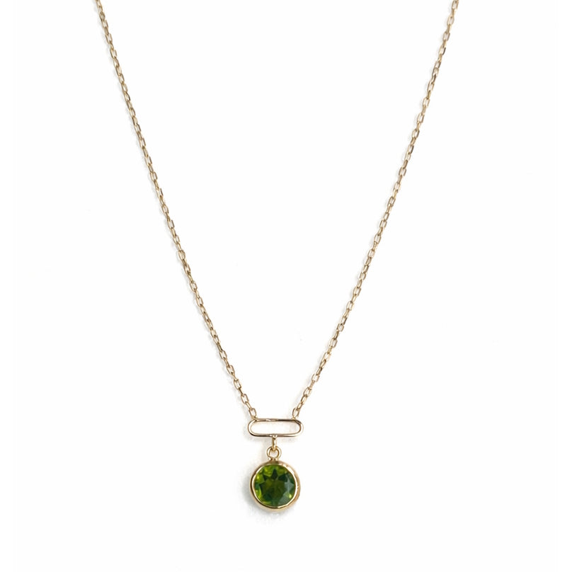 14ky Peridot bezel motif gold chain necklace 17" 7mm