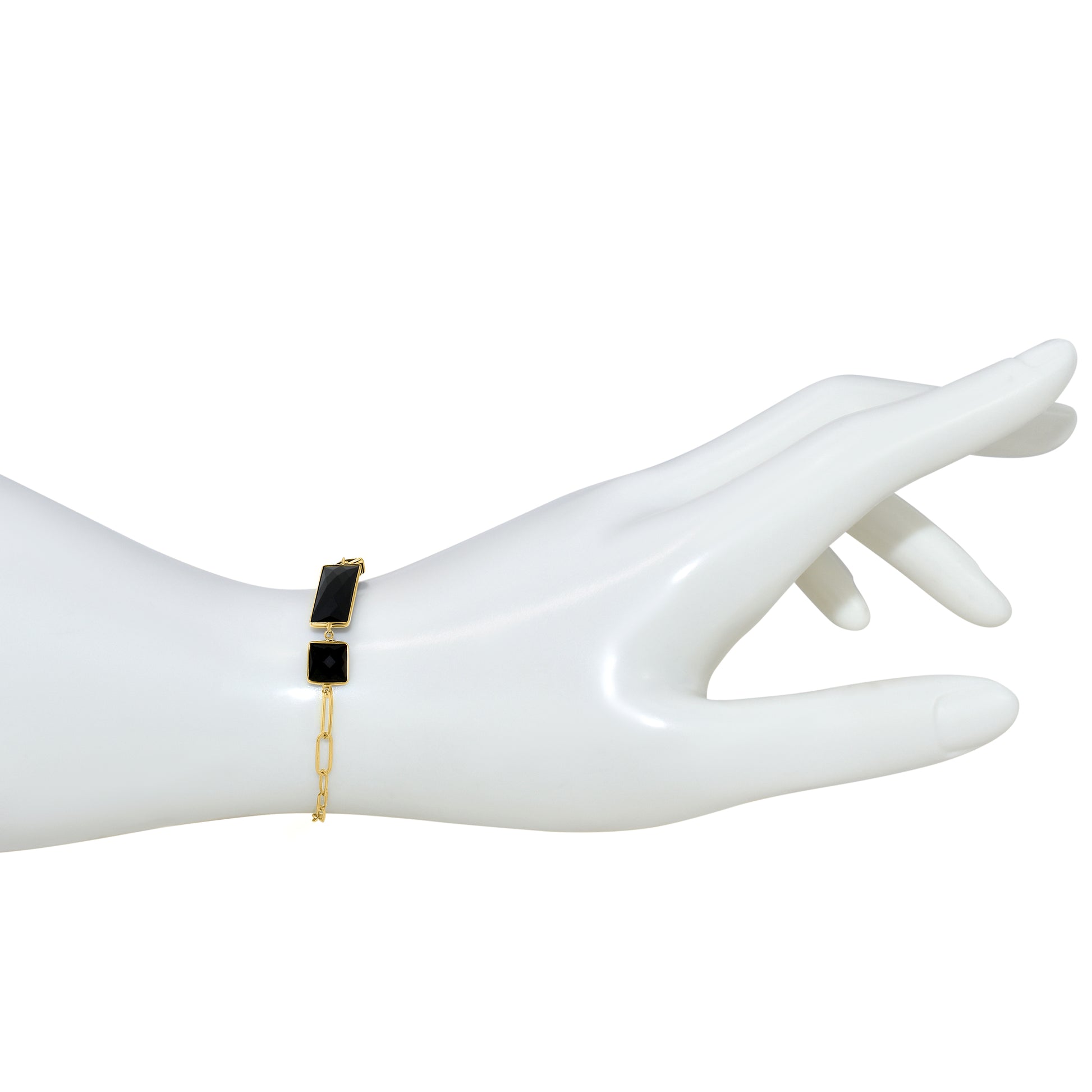 14k Onyx Square & Bezel Paperclip Bracelet