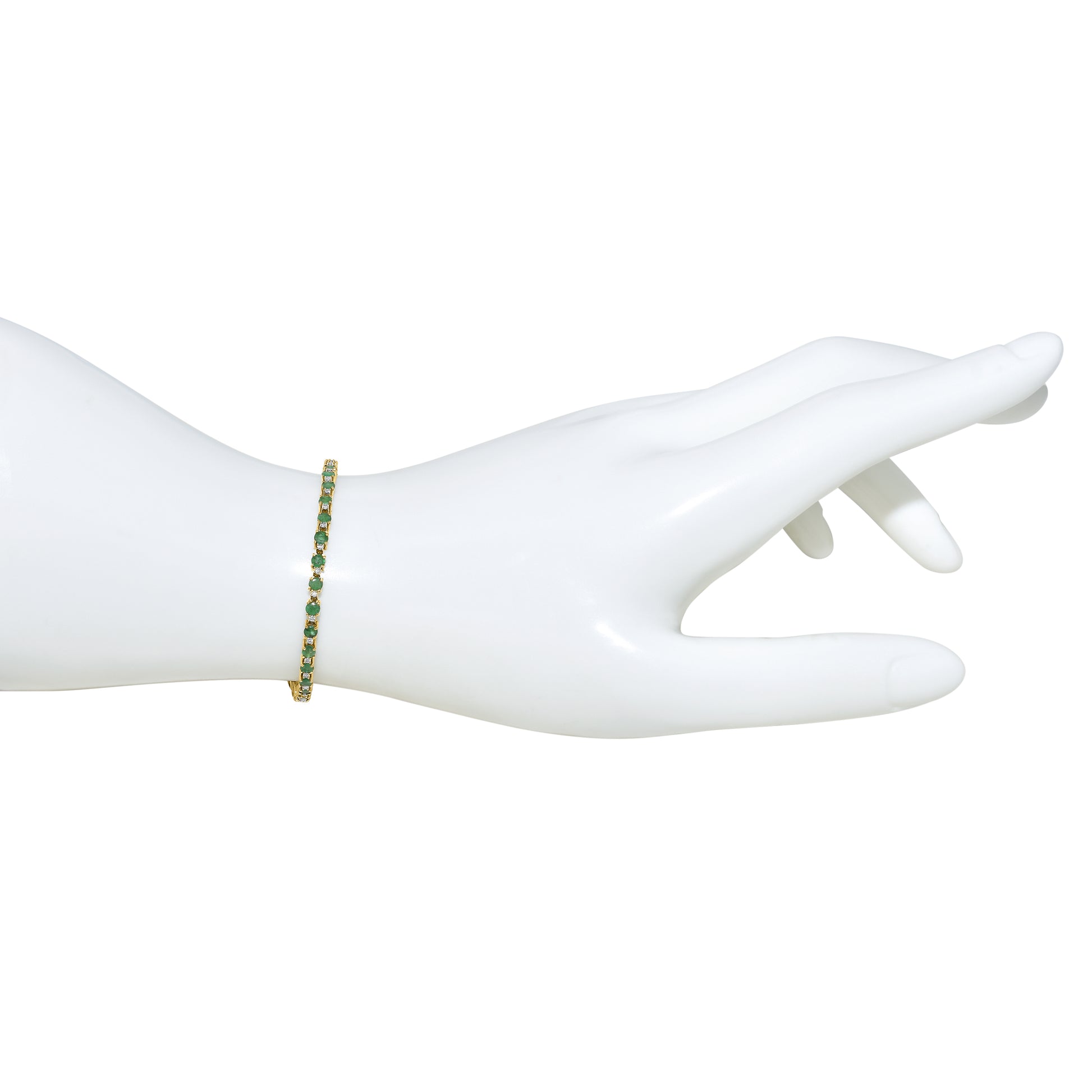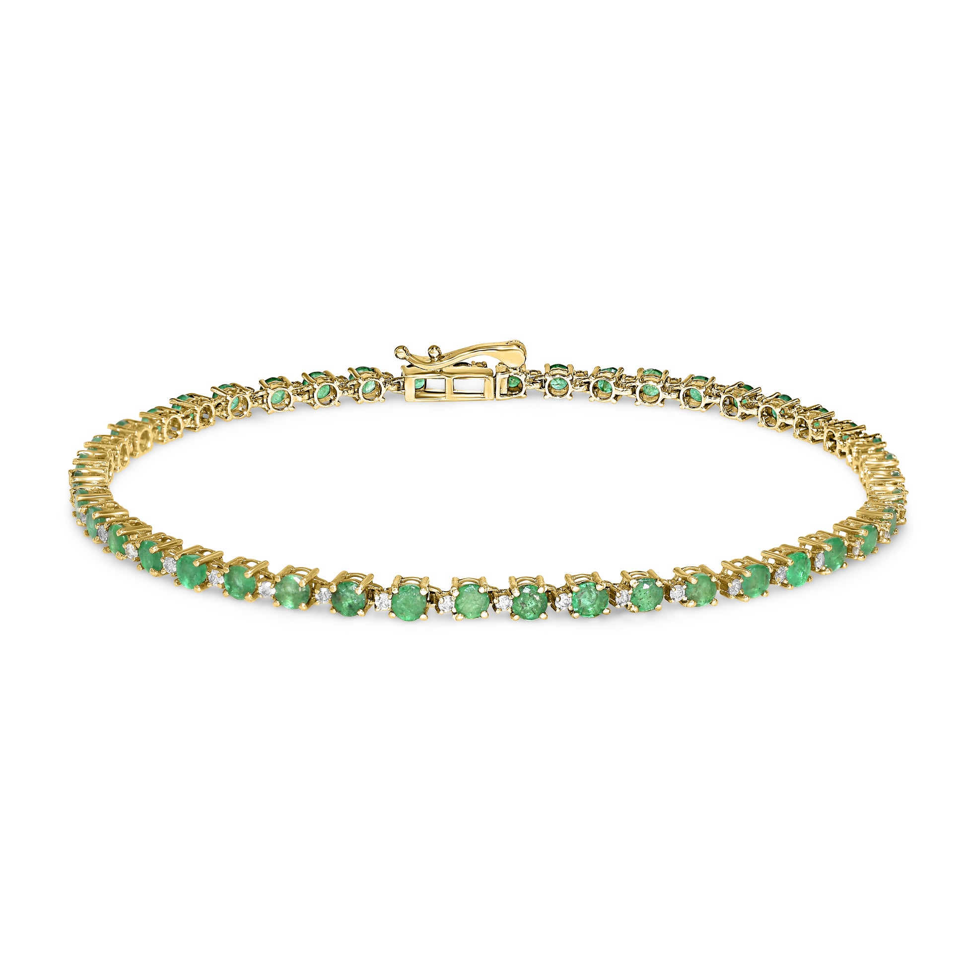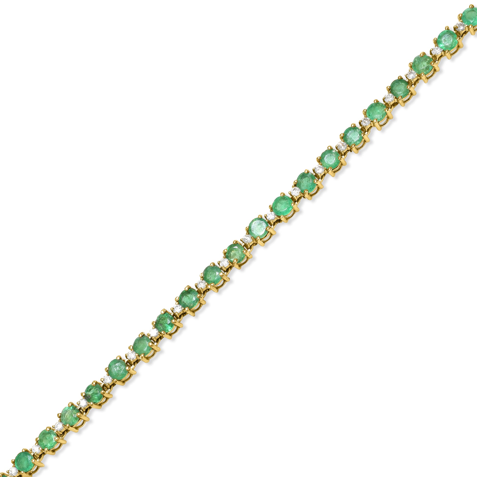 Fall under the spell of this stunning 14k diamond emerald bracelet. Adorn your wrist with this luxurious piece of jewelry that will elevate any outfit. Become the envy of others with the brilliant diamonds and vibrant emerald stones. A true statement piece for any occasion.
