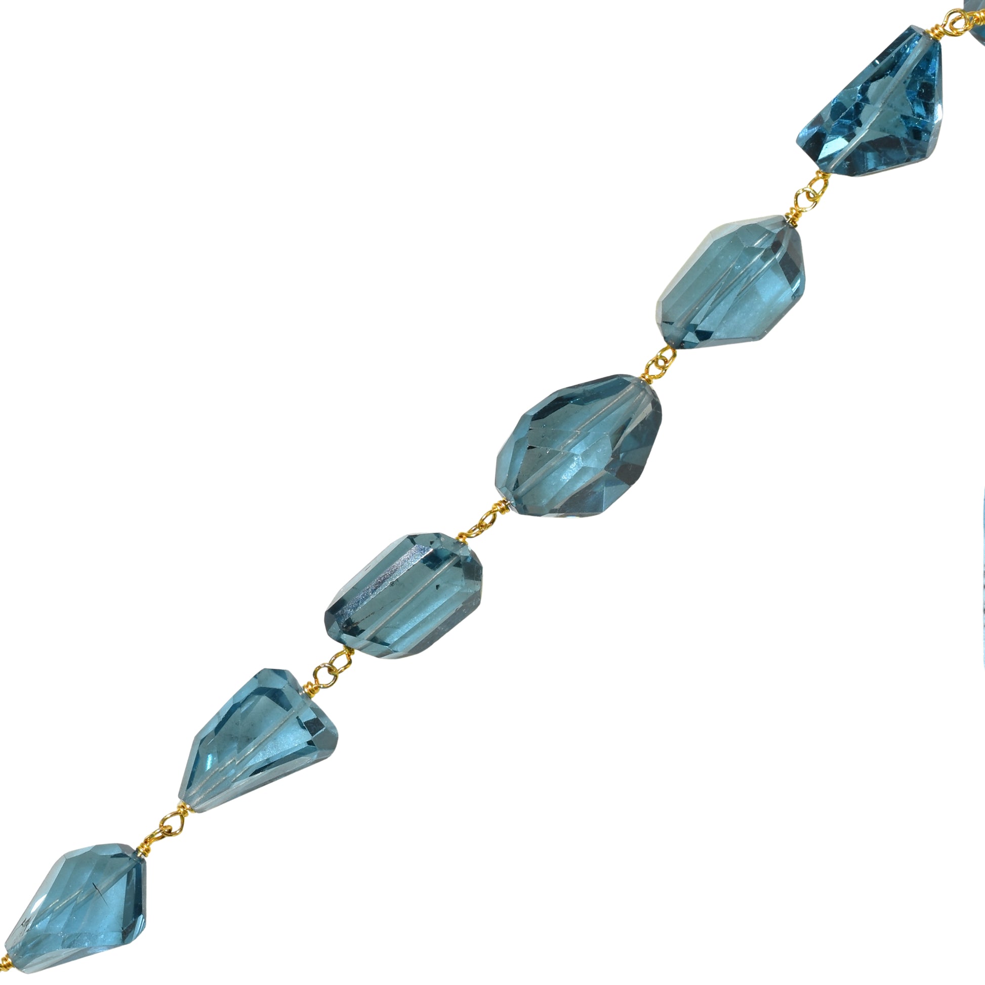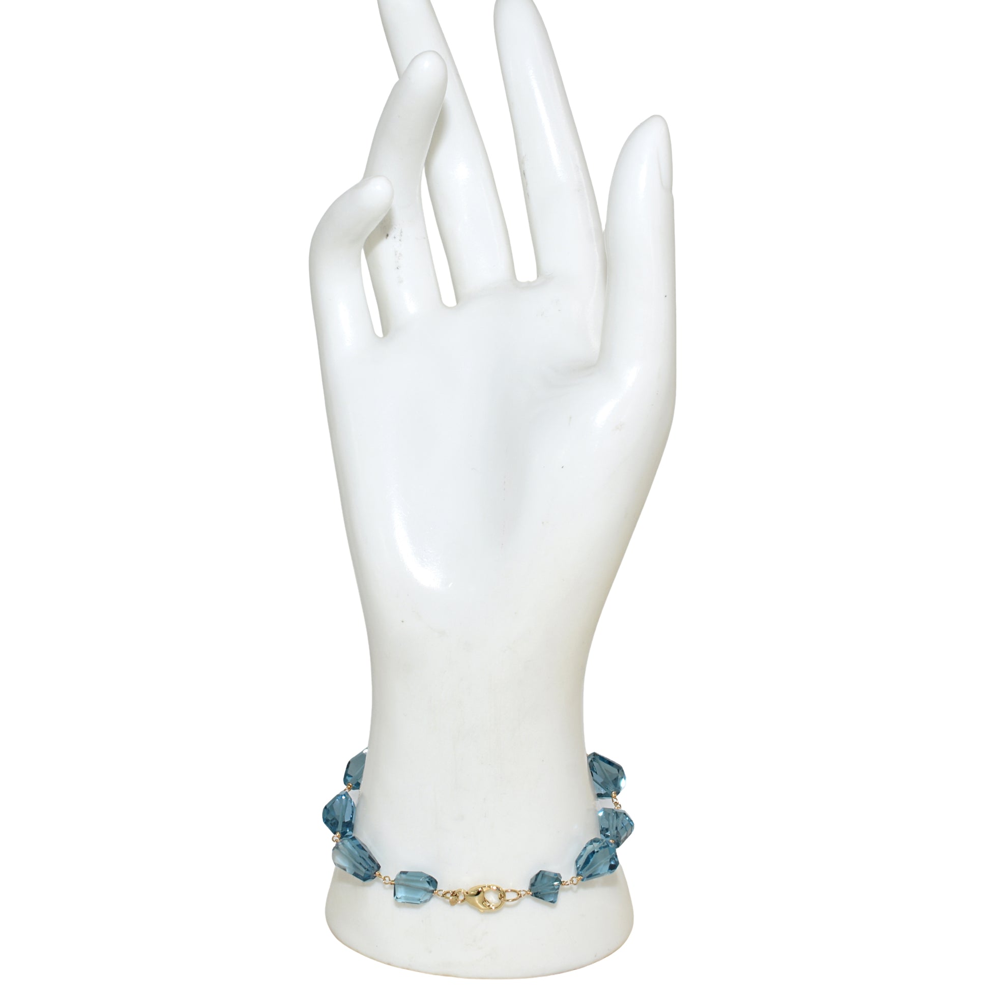 Elevate your style with this 14k gold bracelet featuring striking London Blue Topaz nuggets. The rich blue stones, set in nugget-shaped links, add a vibrant touch to any look. Crafted for durability and elegance, this bracelet balances boldness with refined charm, making it perfect for both everyday wear and special occasions. Experience the captivating beauty and lasting quality that complement your unique style.