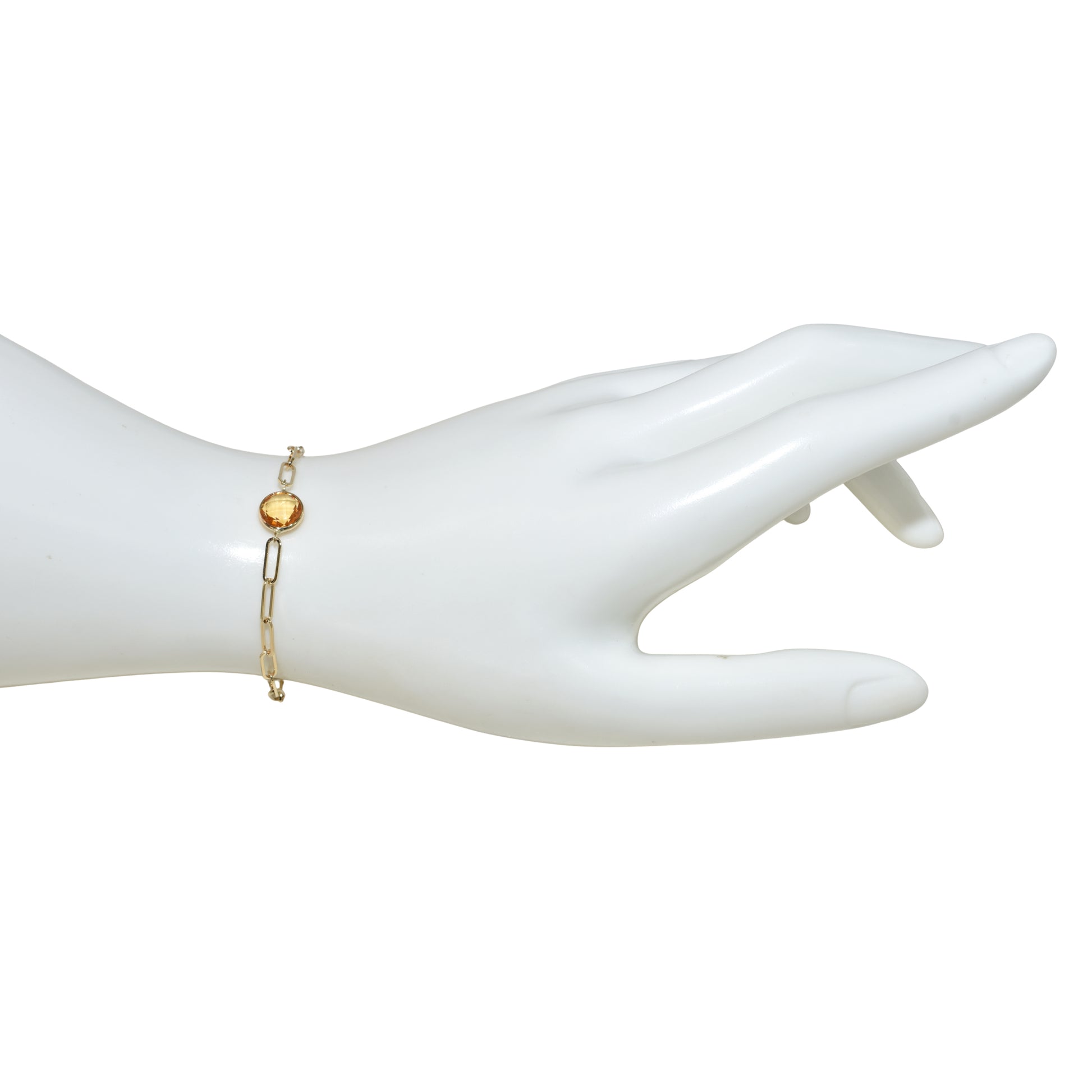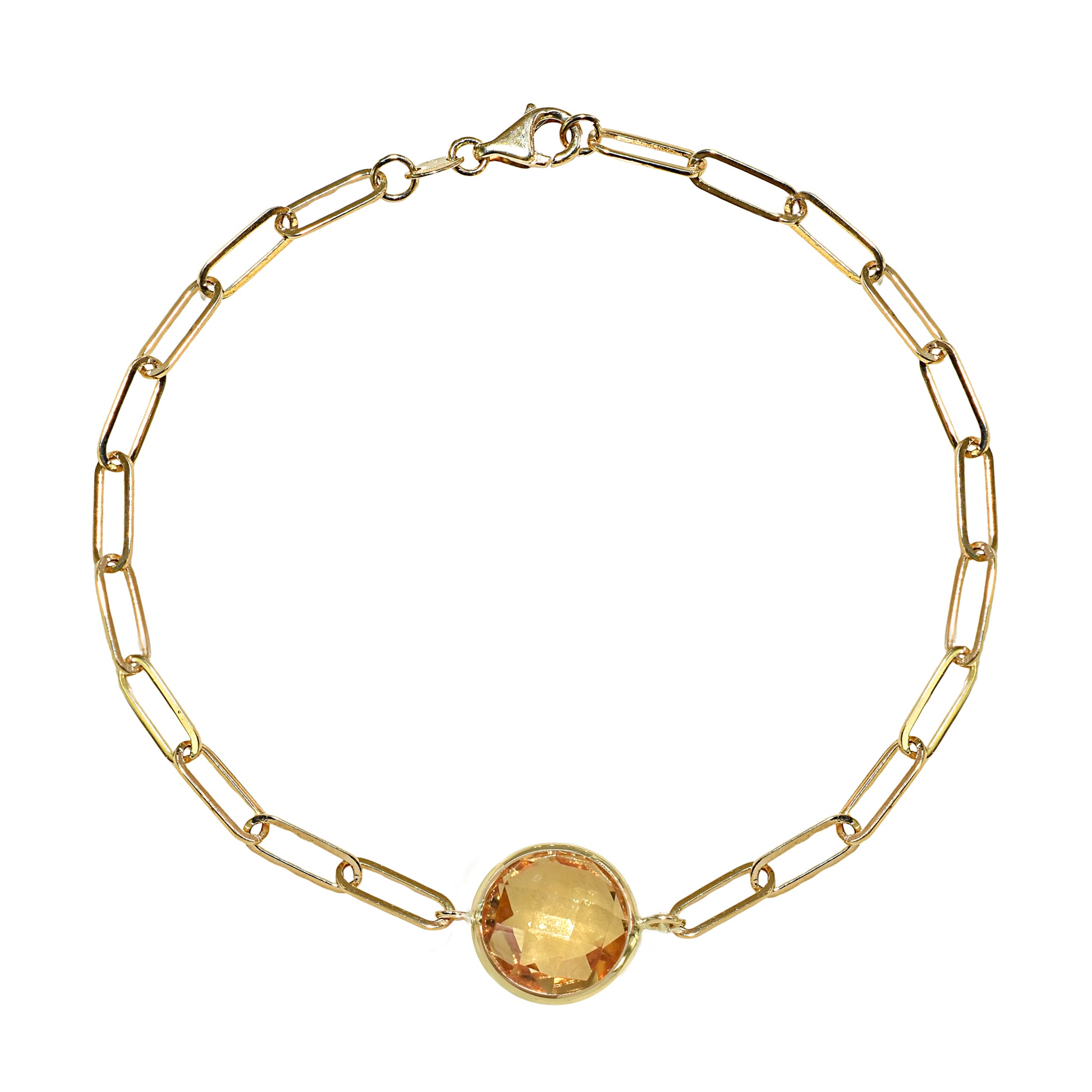 14k Citrine Round Paperclip Bracelet