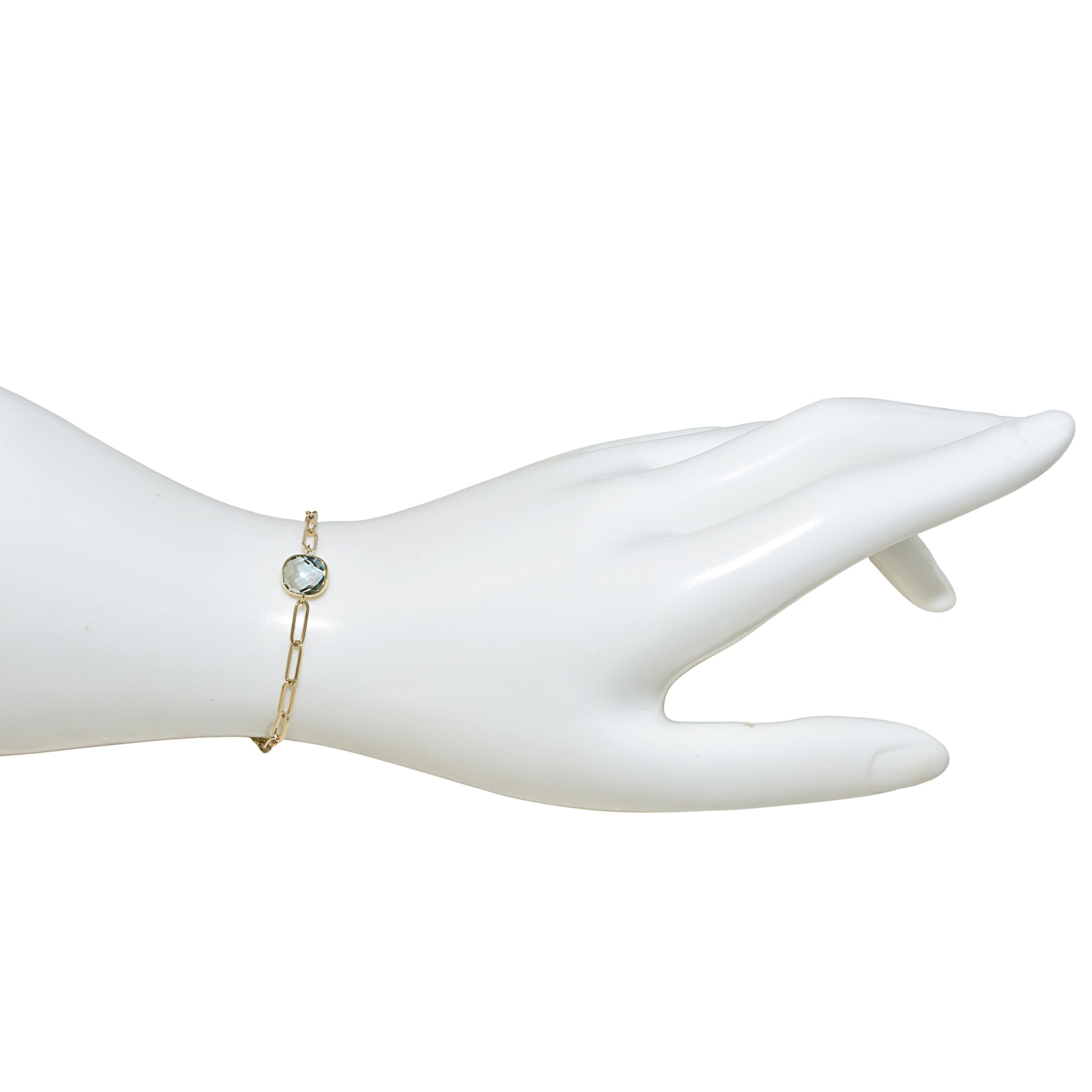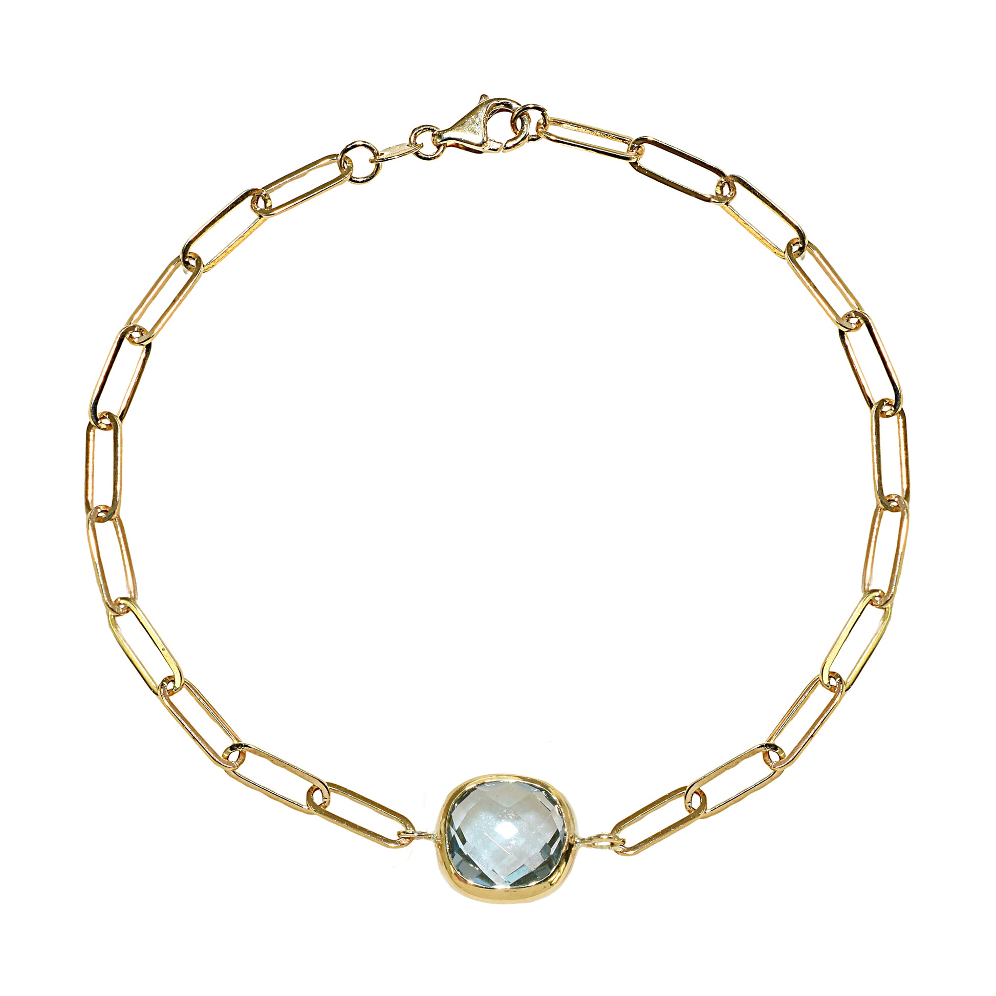 14k Blue Topaz Cushion Paperclip Bracelet