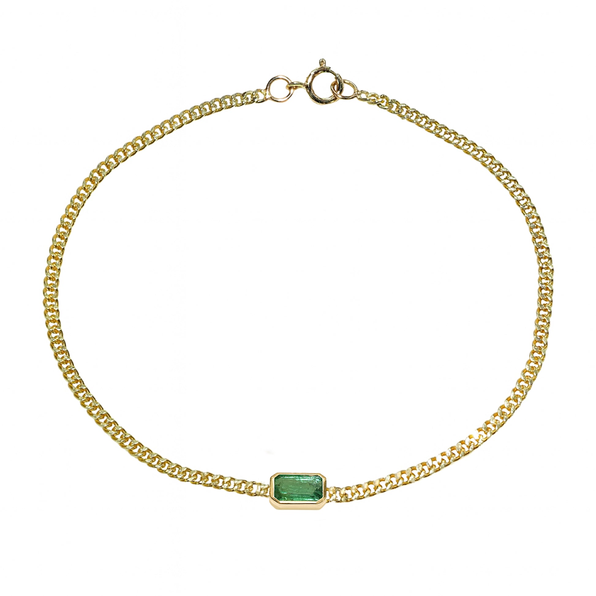 Elevate your style with this 14k Emerald Square Bezel Bracelet, featuring a stunning square-cut emerald securely framed in a sleek bezel setting. Crafted from durable 14k gold, this bracelet offers both elegance and lasting shine. Its timeless design adds a refined touch to any outfit, making it perfect for special occasions or everyday wear. Experience the perfect blend of luxury and sophistication with this must-have accessory.