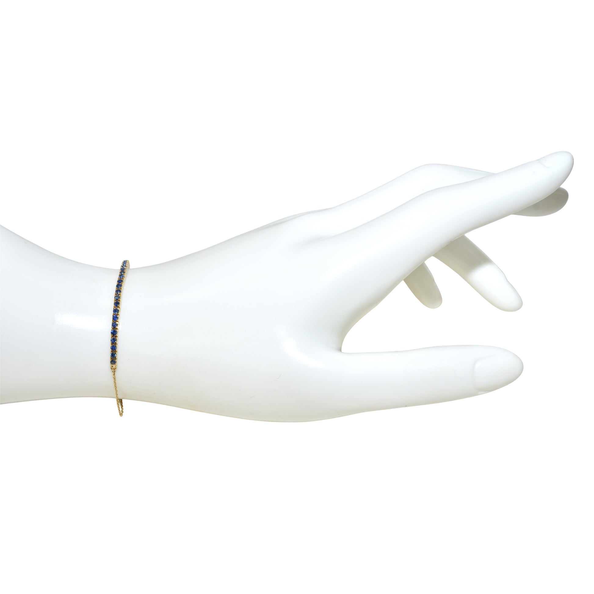 Elevate your jewelry collection with this exquisite 14k Sapphire Tennis Bracelet. Crafted from luminous 14k gold and adorned with vibrant sapphire stones, it offers timeless elegance and versatile style. Perfect for both everyday wear and special occasions, this bracelet adds a touch of refined luxury to any outfit. Its durable design ensures lasting beauty and comfort, making it a stunning investment piece you'll cherish for years.