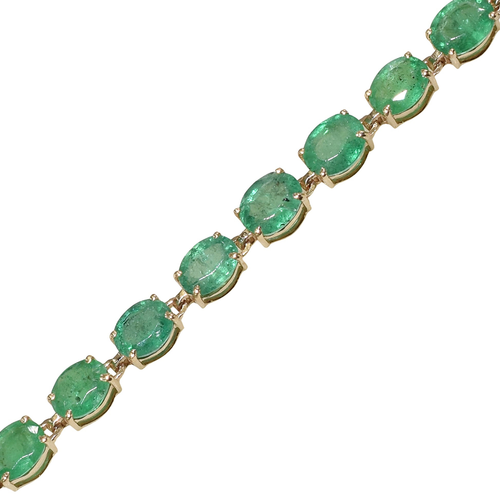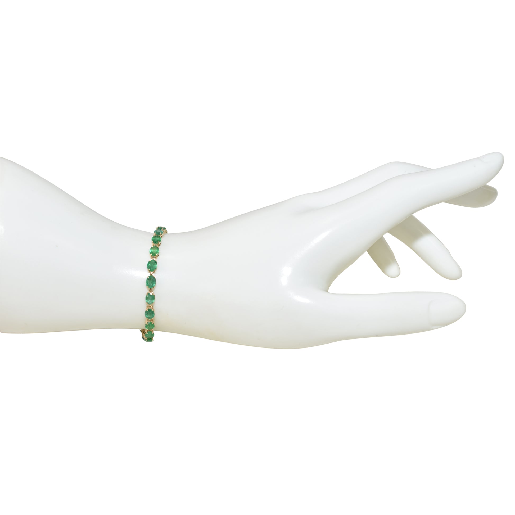Elevate your elegance with this 14k Emerald Tennis Bracelet, featuring vibrant emeralds set in gleaming 14k gold. Its timeless design offers a perfect balance of sophistication and everyday wearability, making it a stunning addition to any jewelry collection. Whether for a special occasion or daily grace, this bracelet enhances your style with rich color and enduring quality.