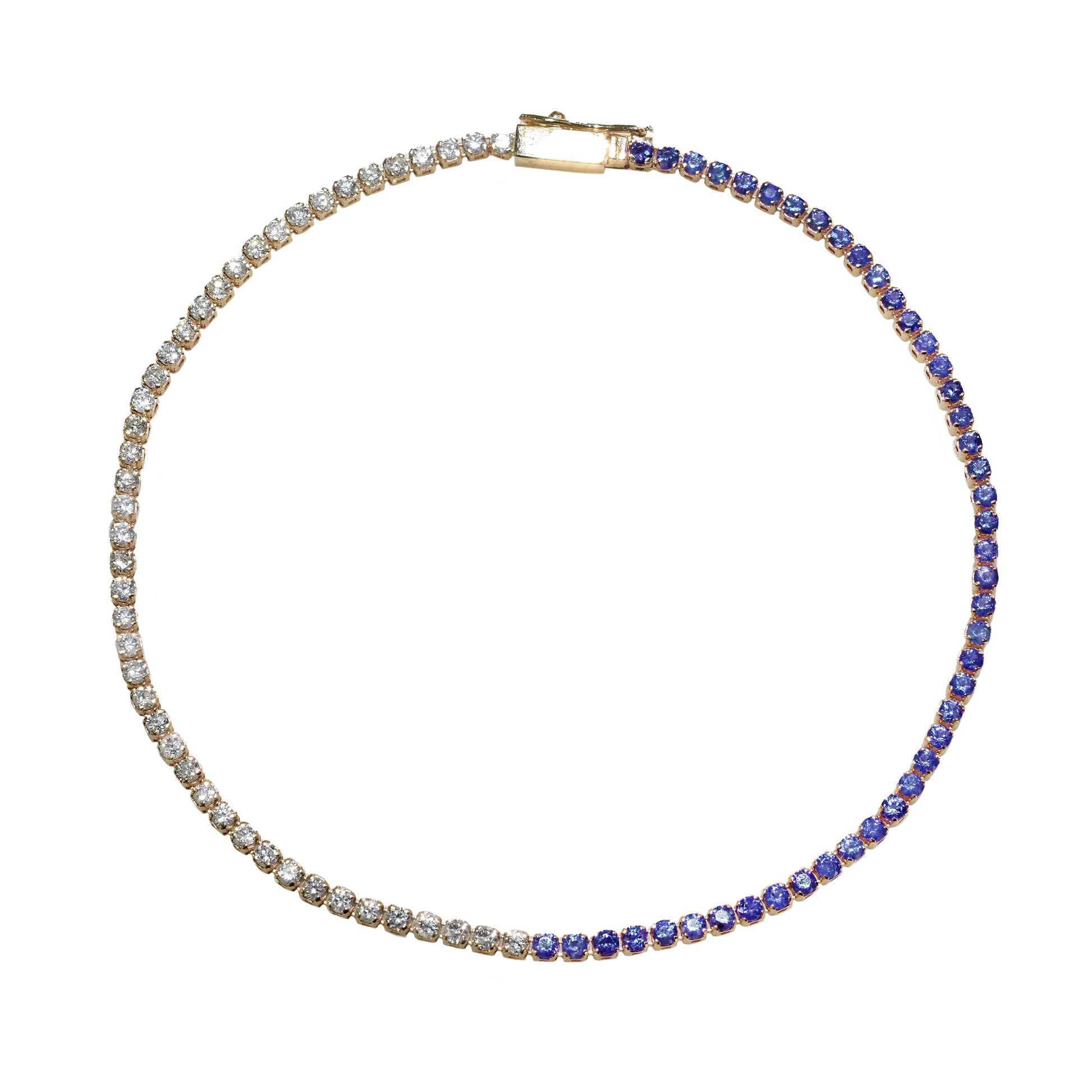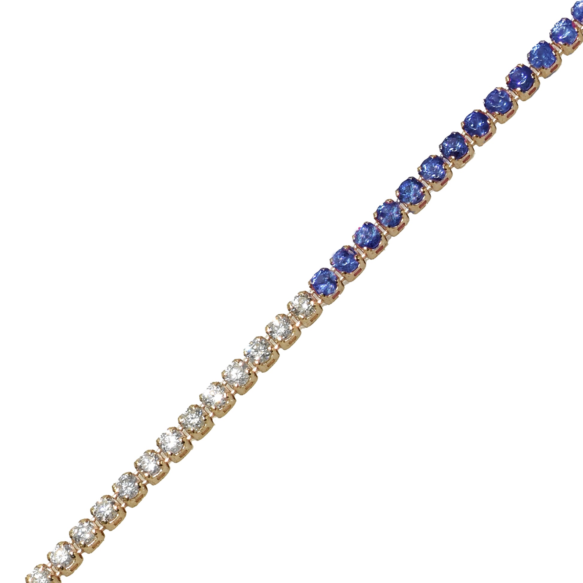 Elevate your jewelry collection with this stunning 14k sapphire and diamond bracelet. Featuring brilliant round-cut stones set in lustrous 14-karat gold, this piece combines timeless elegance with sophisticated sparkle. The rich sapphire hues complement the radiant diamond accents, creating a captivating contrast that catches light beautifully. Perfect for special occasions or everyday luxury, this bracelet makes an unforgettable statement. Whether you're treating yourself or searching for a meaningful gift, this exquisite design delivers both beauty and lasting value.