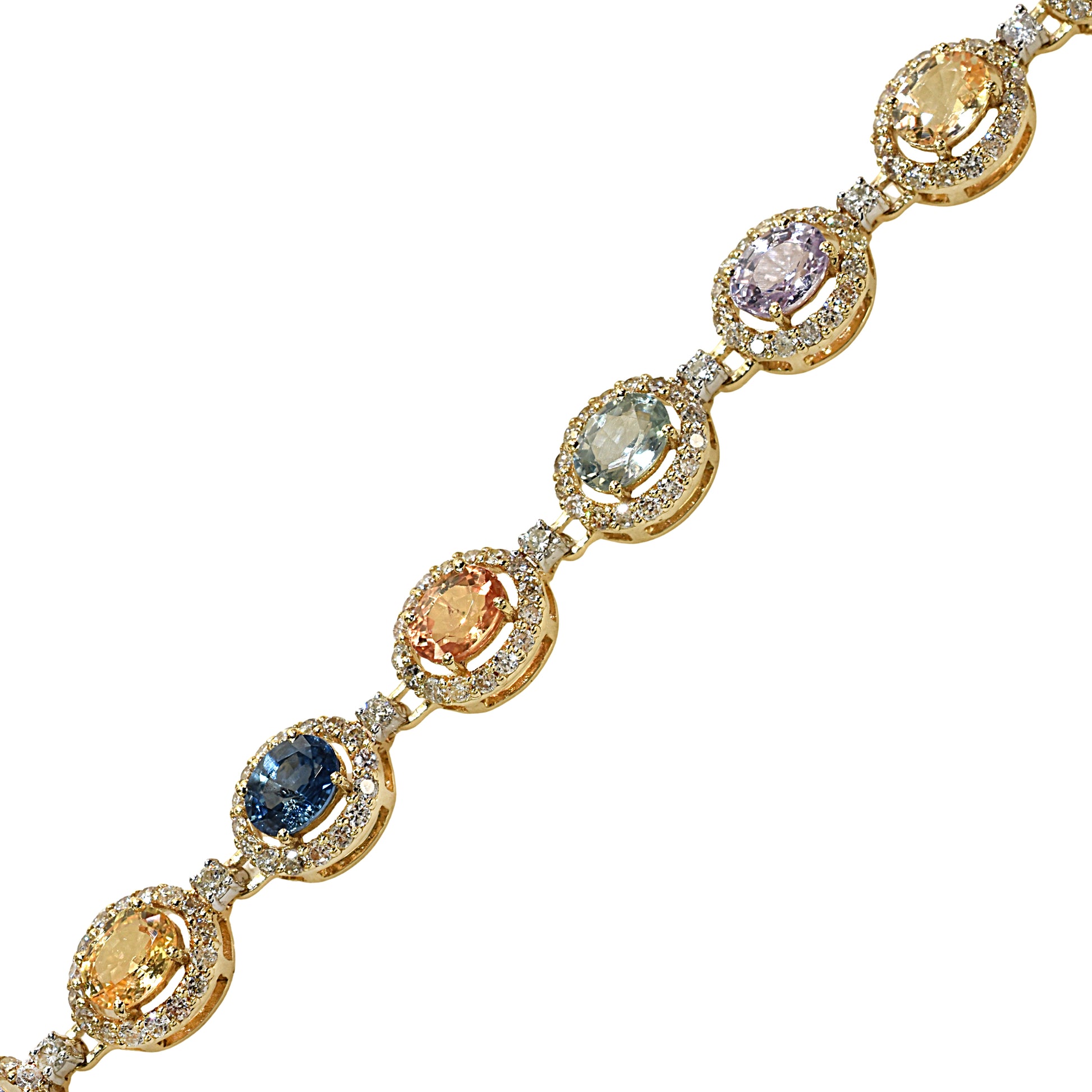 14k Multi Sapphire Diamond Round Cut Tennis Bracelet