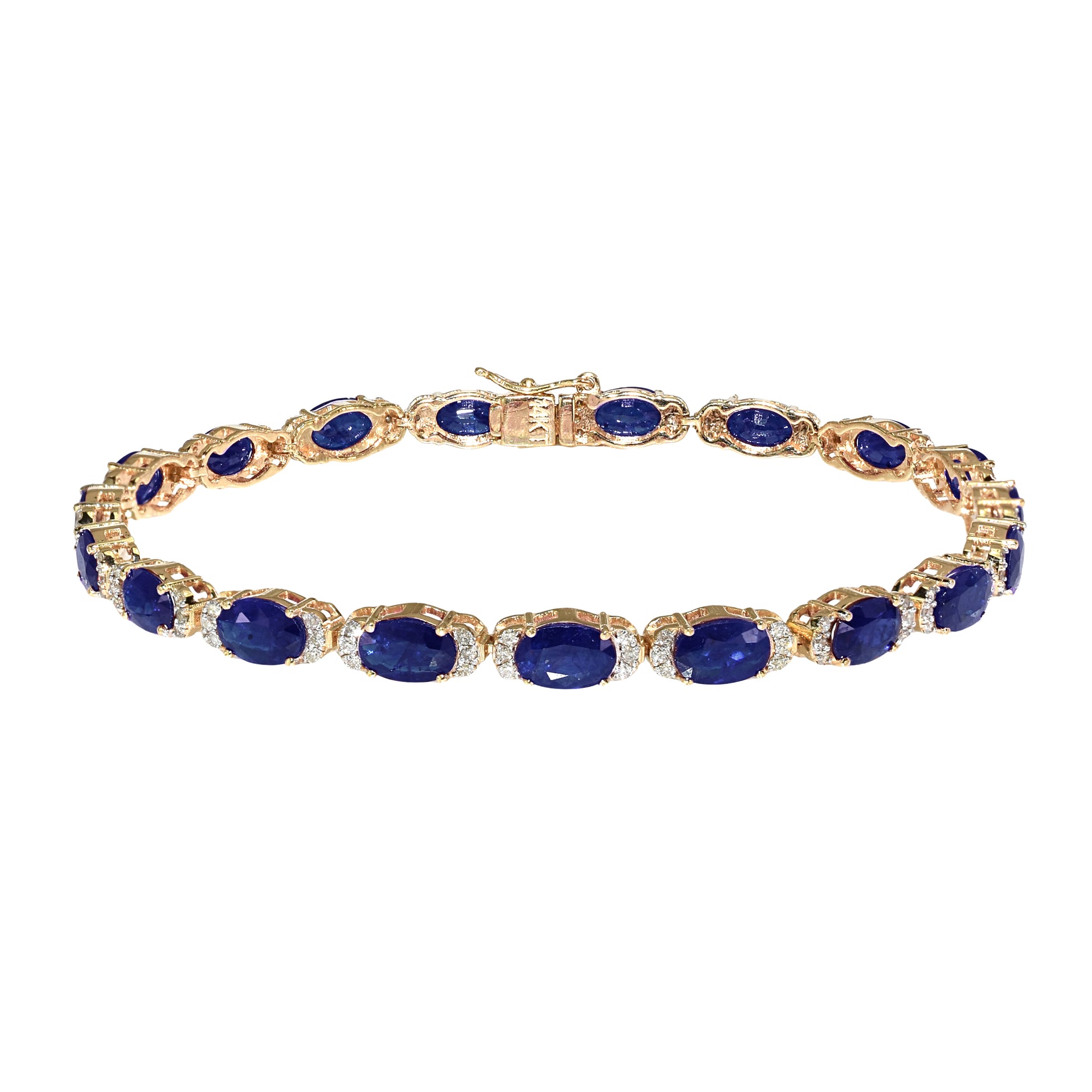Elevate your jewelry collection with this stunning 14k sapphire and diamond tennis bracelet. Featuring brilliant oval-cut sapphires alternating with sparkling diamonds, this timeless piece radiates sophistication and luxury. The secure tennis bracelet design ensures comfort for everyday wear while maintaining its elegant presence. Perfect for special occasions or as a statement accessory, this exquisite bracelet combines classic style with exceptional craftsmanship. A versatile investment piece that complements any wardrobe and makes an unforgettable impression.