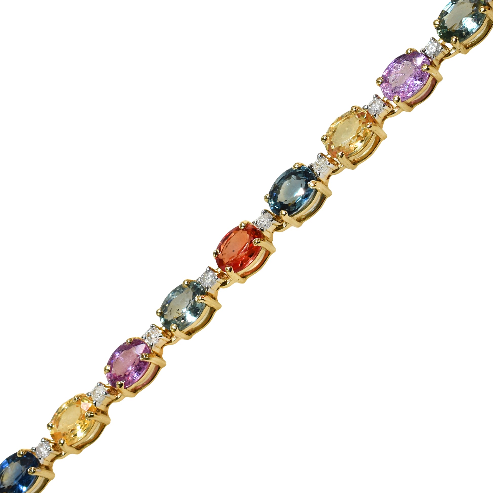 14k Multi Sapphire Diamond Oval Cut Tennis Bracelet