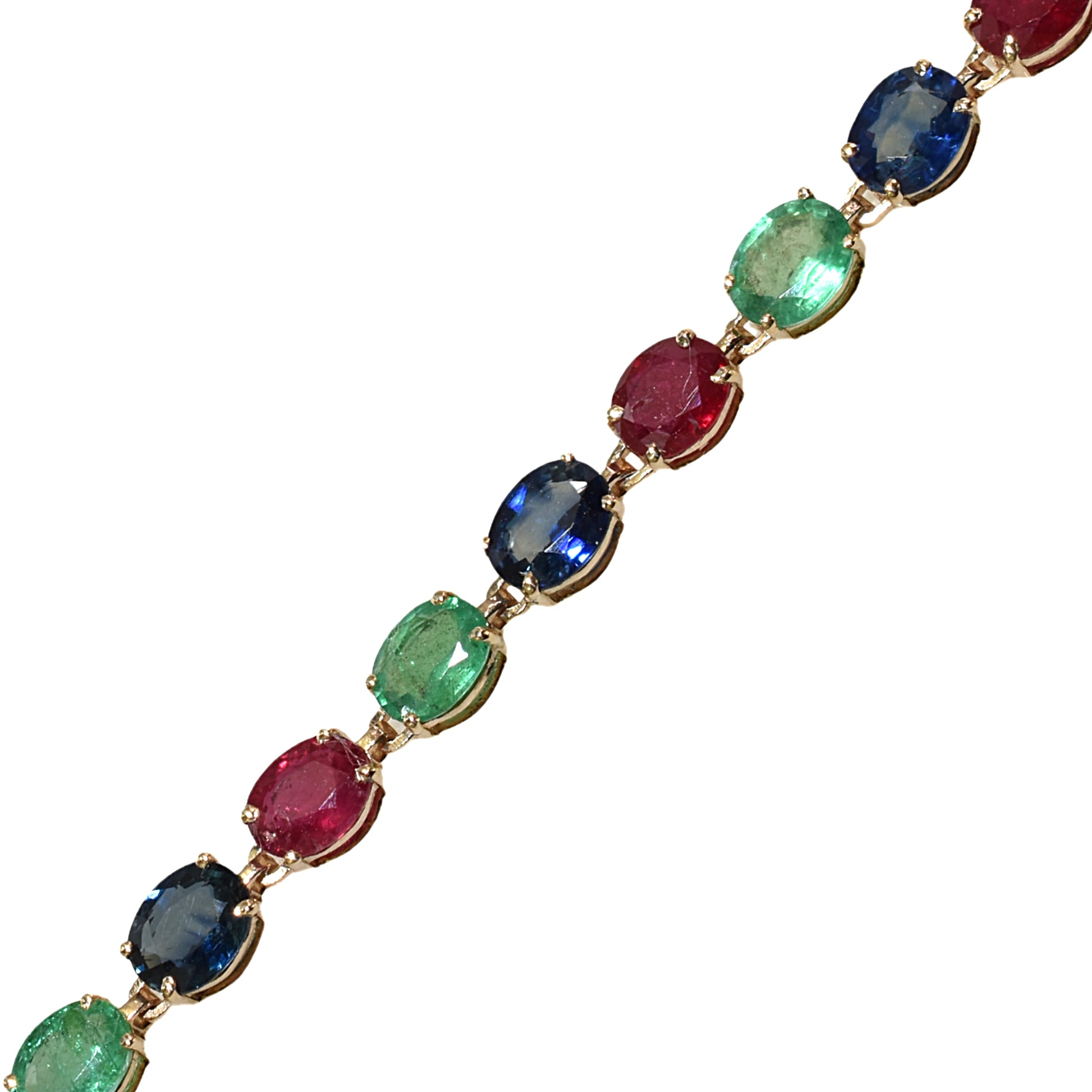 14k Emerald Ruby Sapphire Diamond Tennis Bracelet