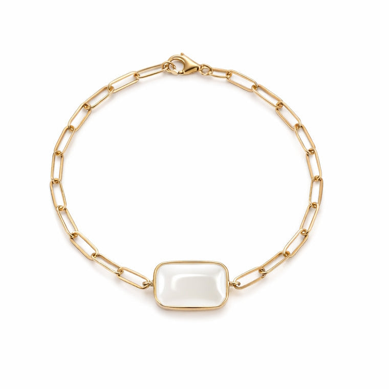 14KY WHITE MOONSTONE CENTER PAPERCLIP BR