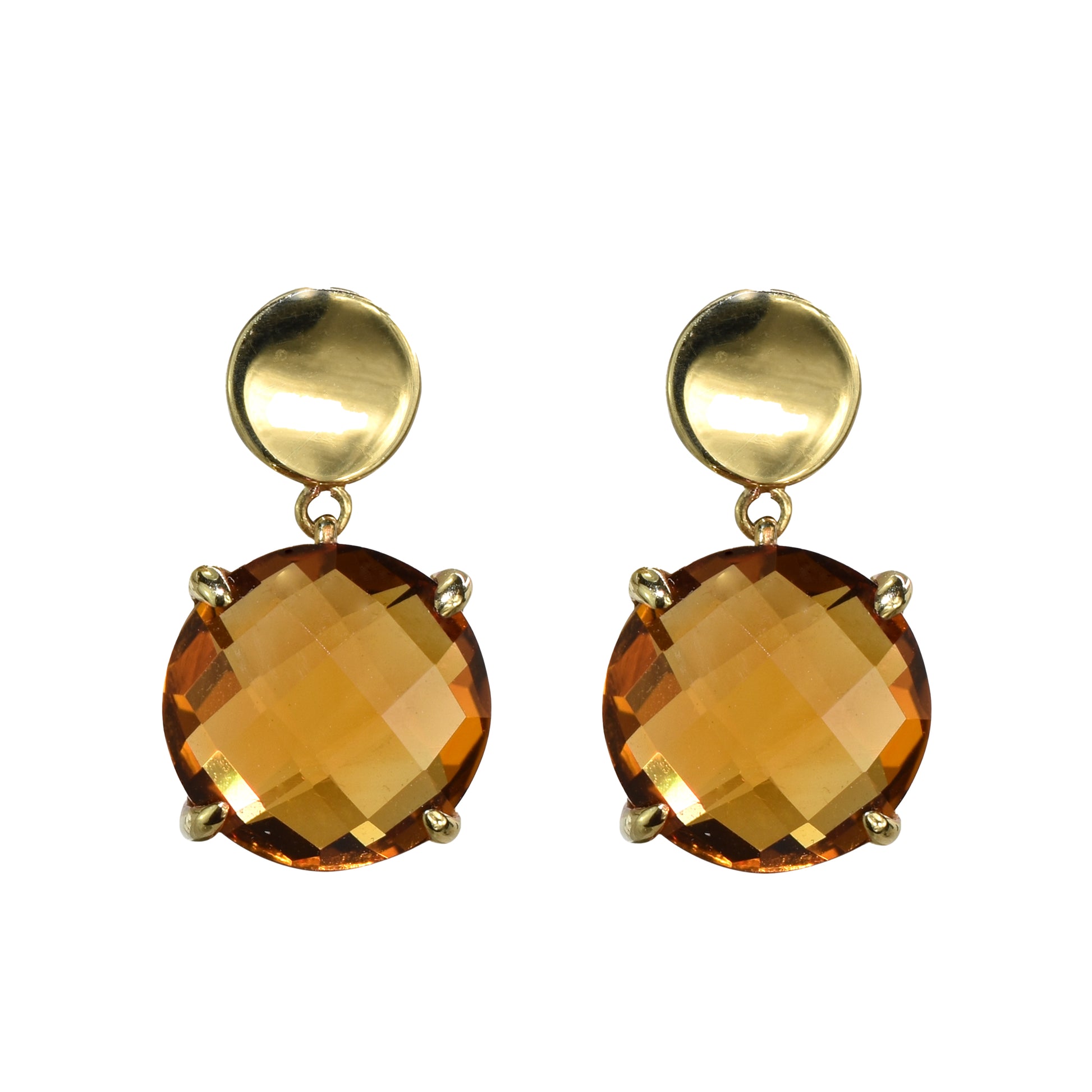 14k Citrine Prong Setting Gold Wavy Coin Post Earring
