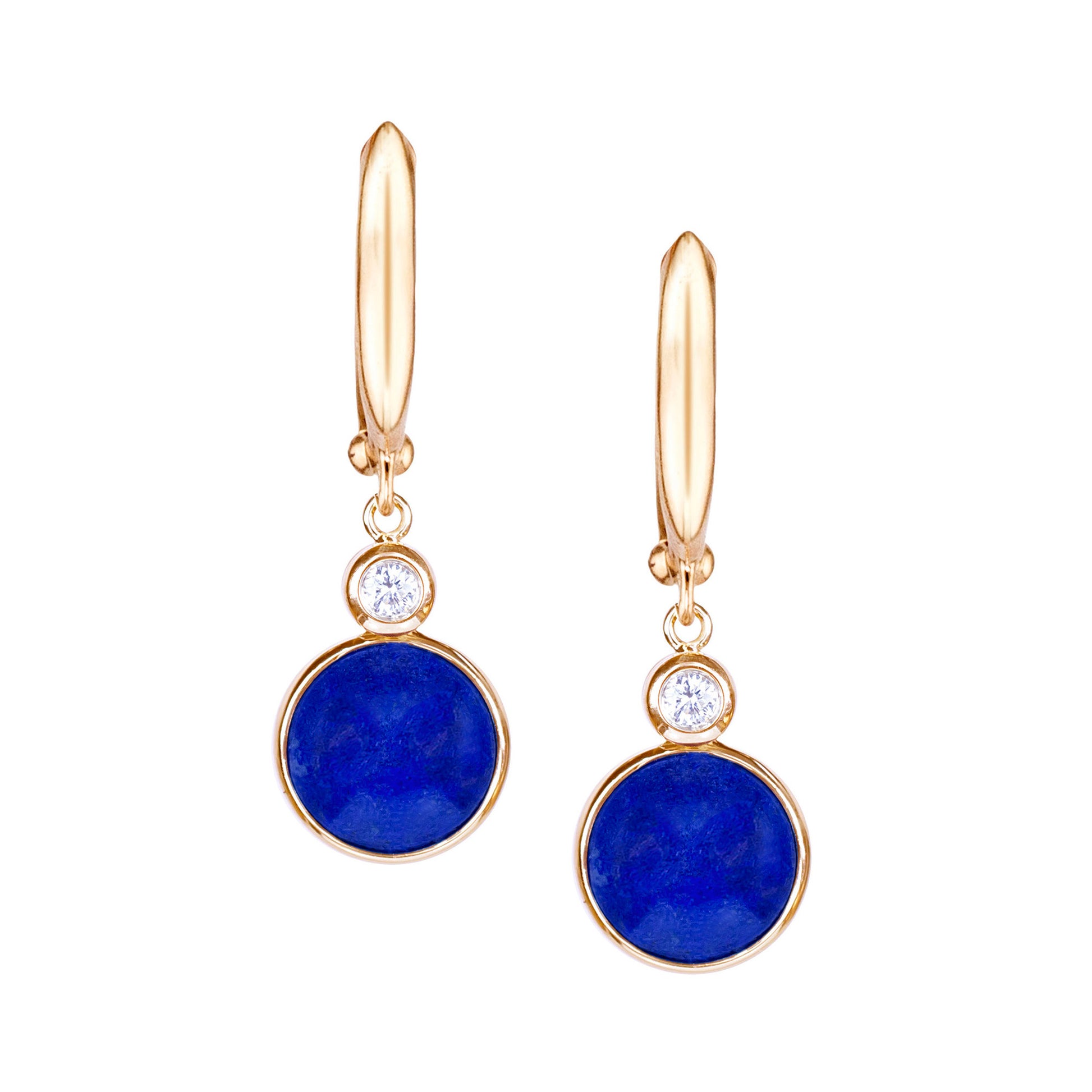 14k Lapis Coin Vs Diamond Roundel Huggie Hoop Drop Earring