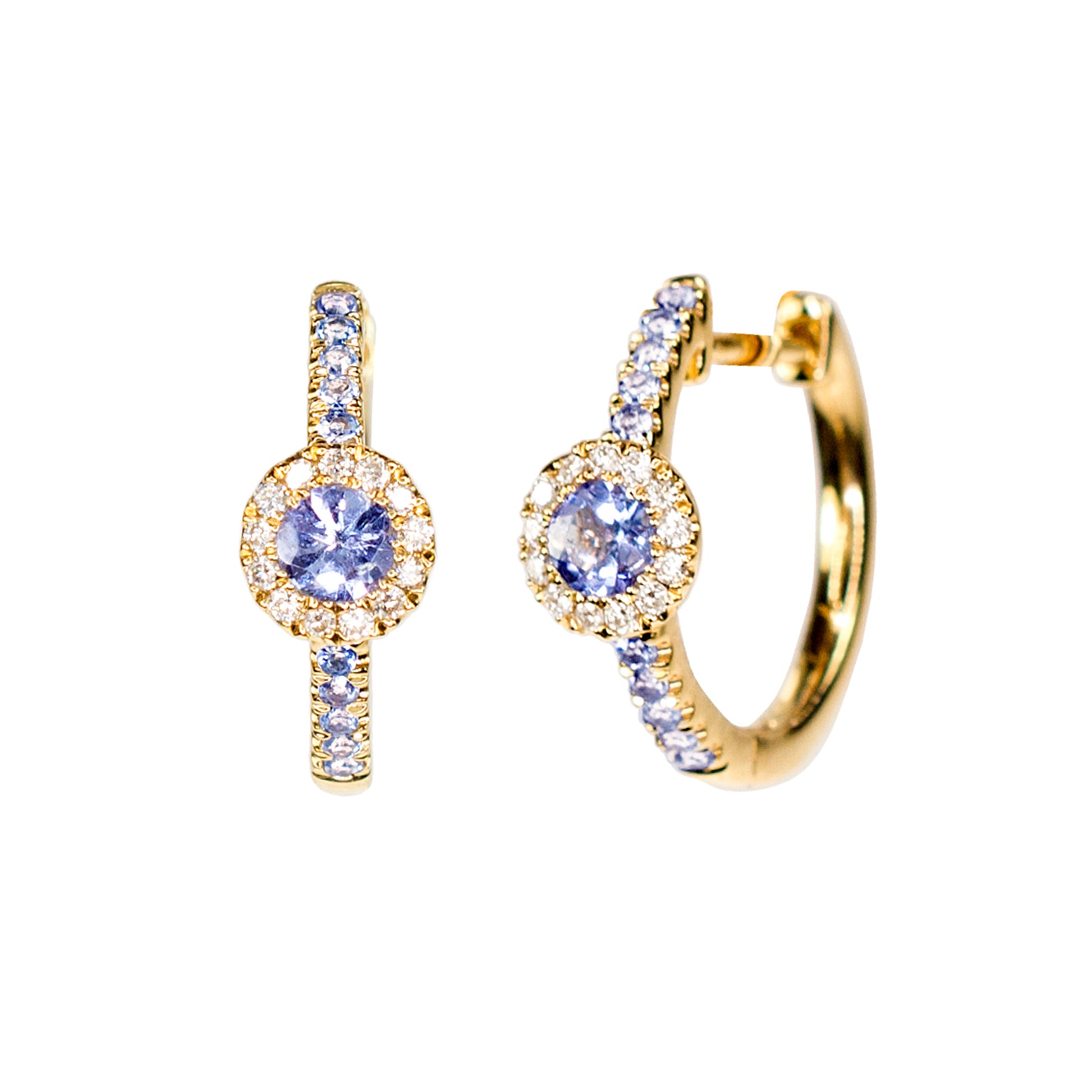 14k Yellow Tanzanite Diamond Hoop Earring