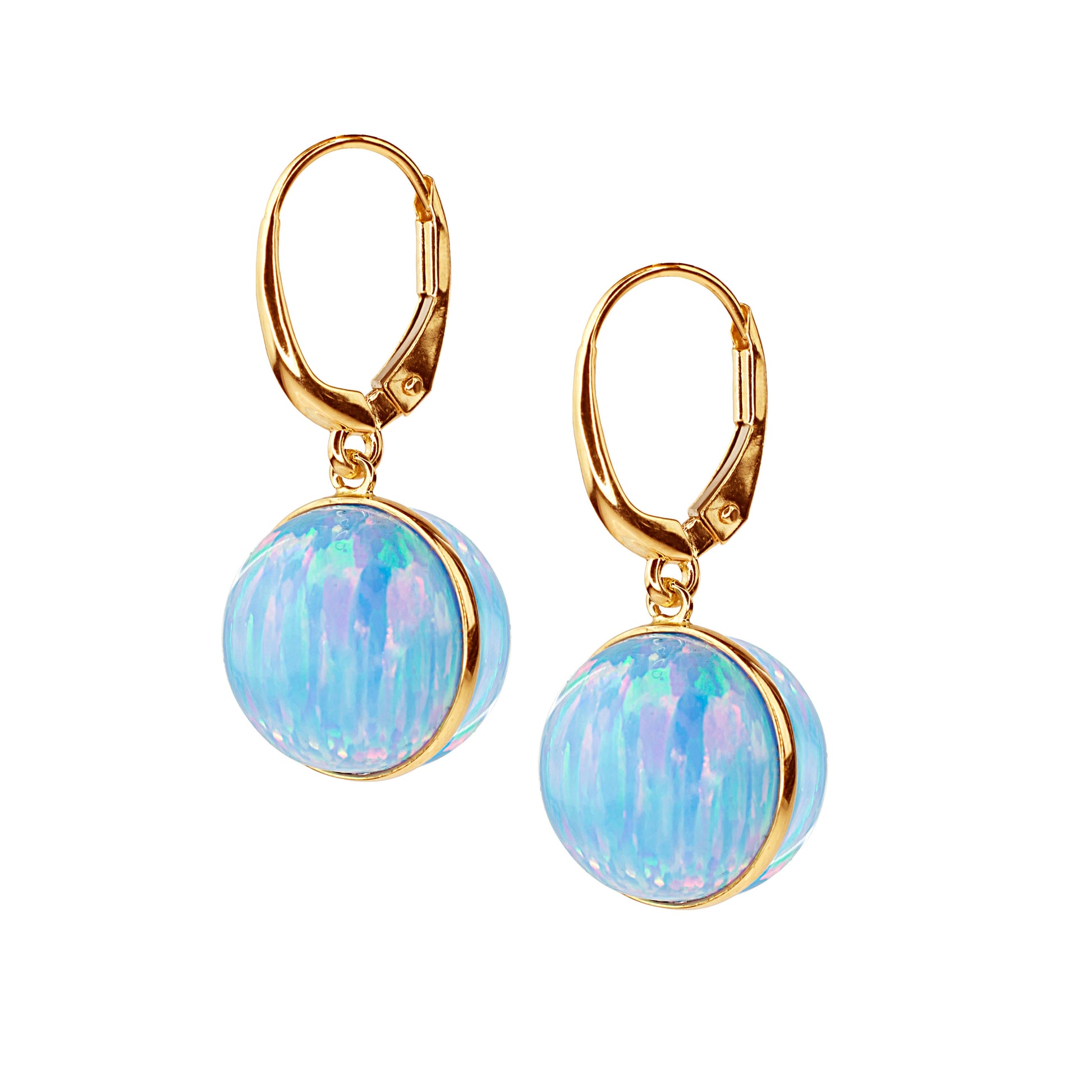 14KY LAB CREATED OPAL SPHERE HOOP EARRING (BLUE) 12MM