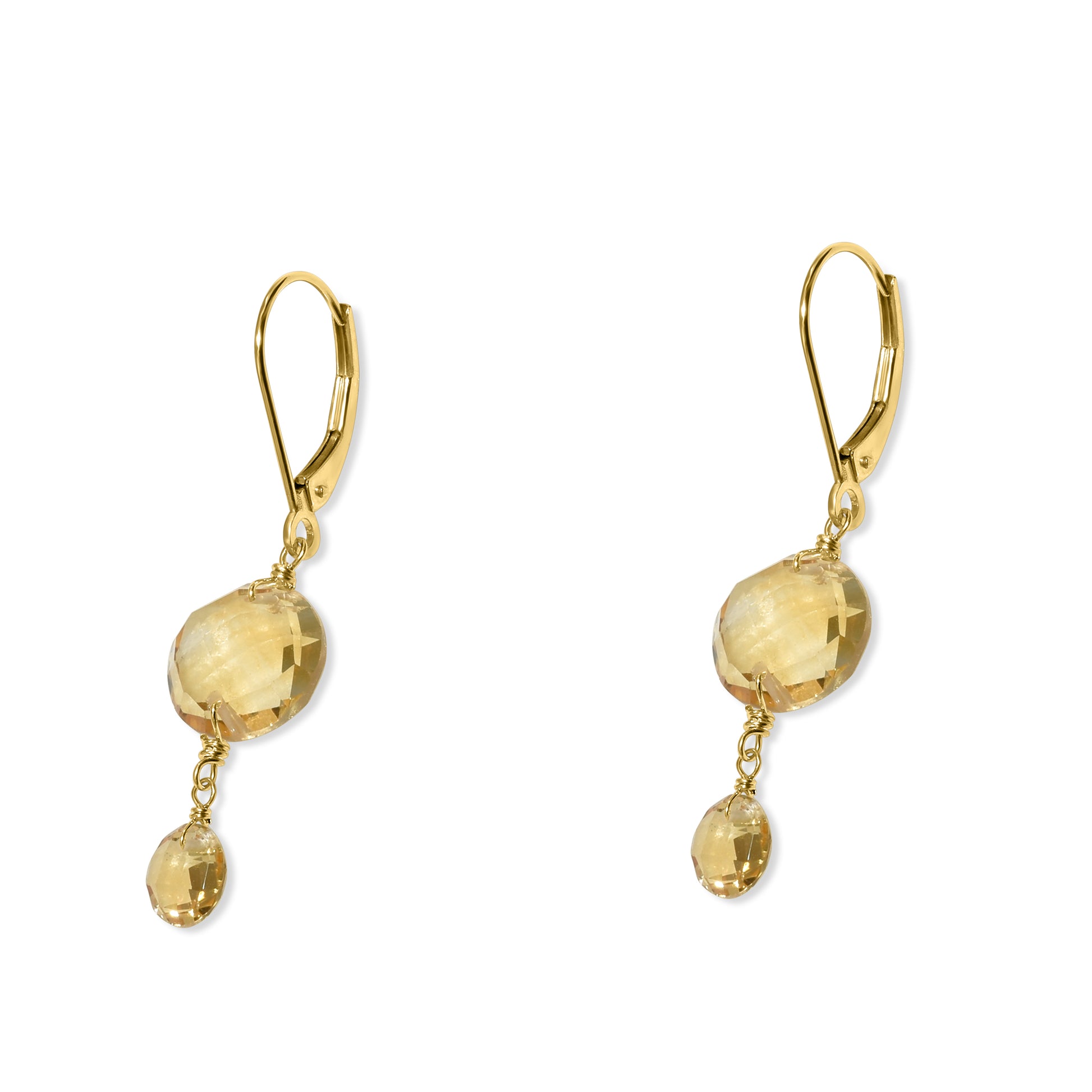 14k Citrine Double Coin Leverback Earring