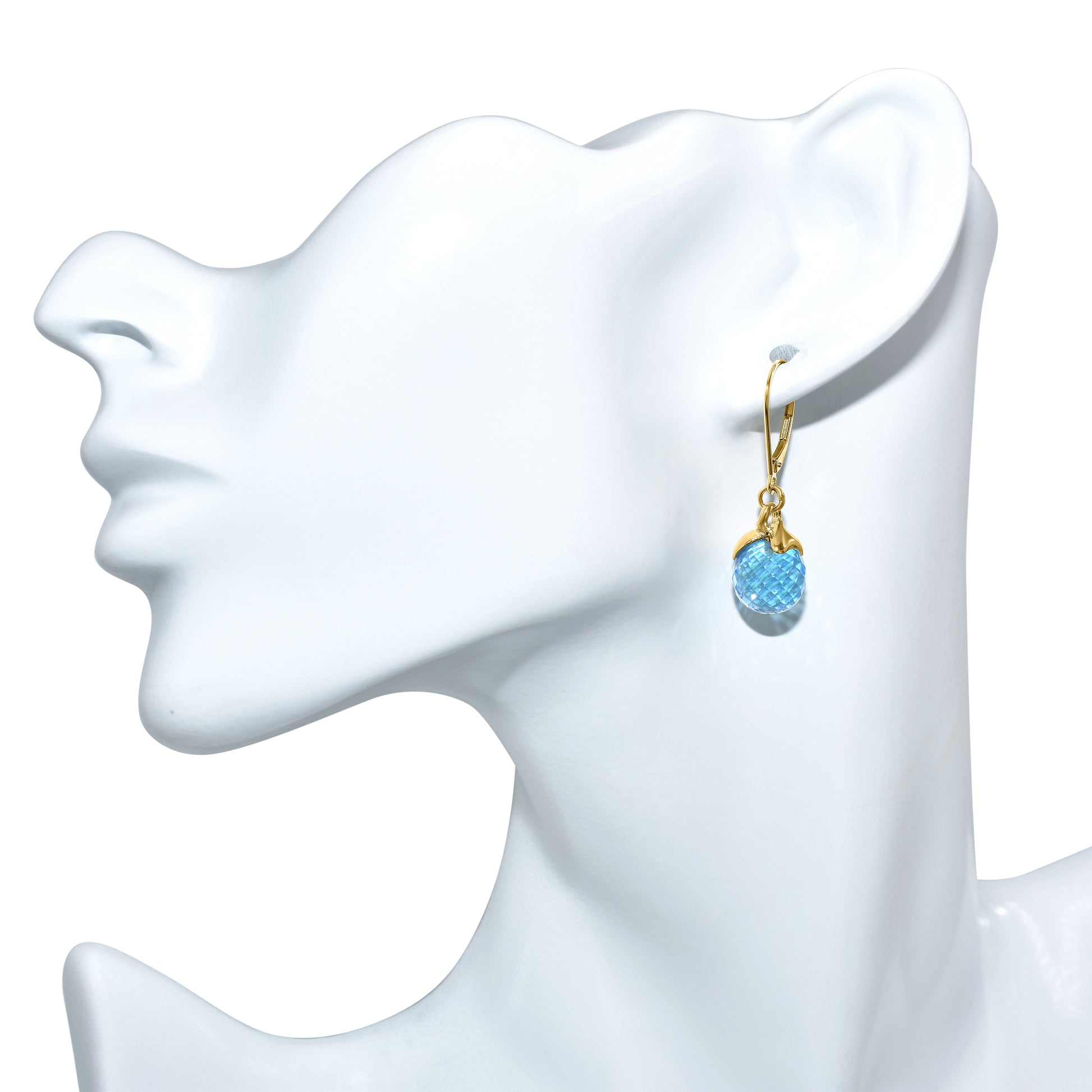 14k Swiss Blue Topaz Fiori Leverback Earring