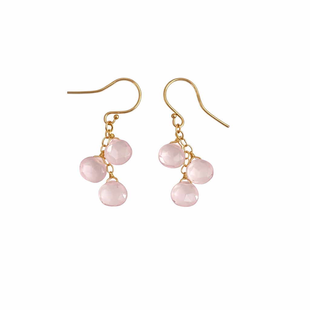 Elegant 14k gold earrings featuring three delicate heart charms that dangle gracefully from classic hook posts. Each heart showcases a vibrant gemstone, adding color and sparkle to any look. Perfect for everyday wear or special occasions, these versatile earrings combine timeless design with modern appeal. Lightweight and comfortable for all-day wear.