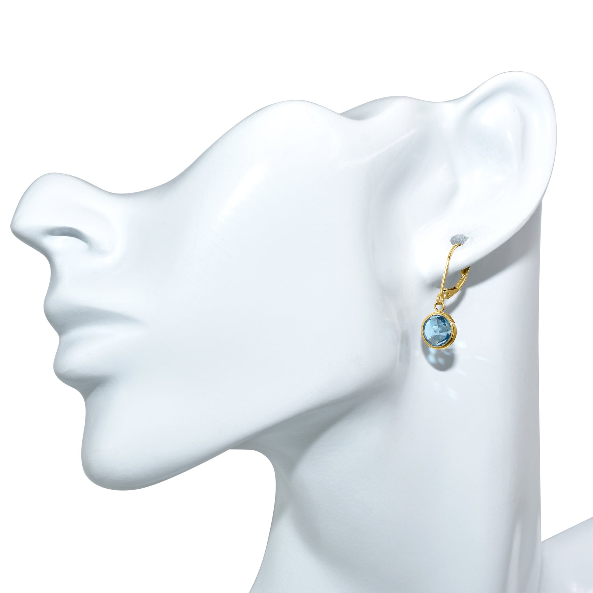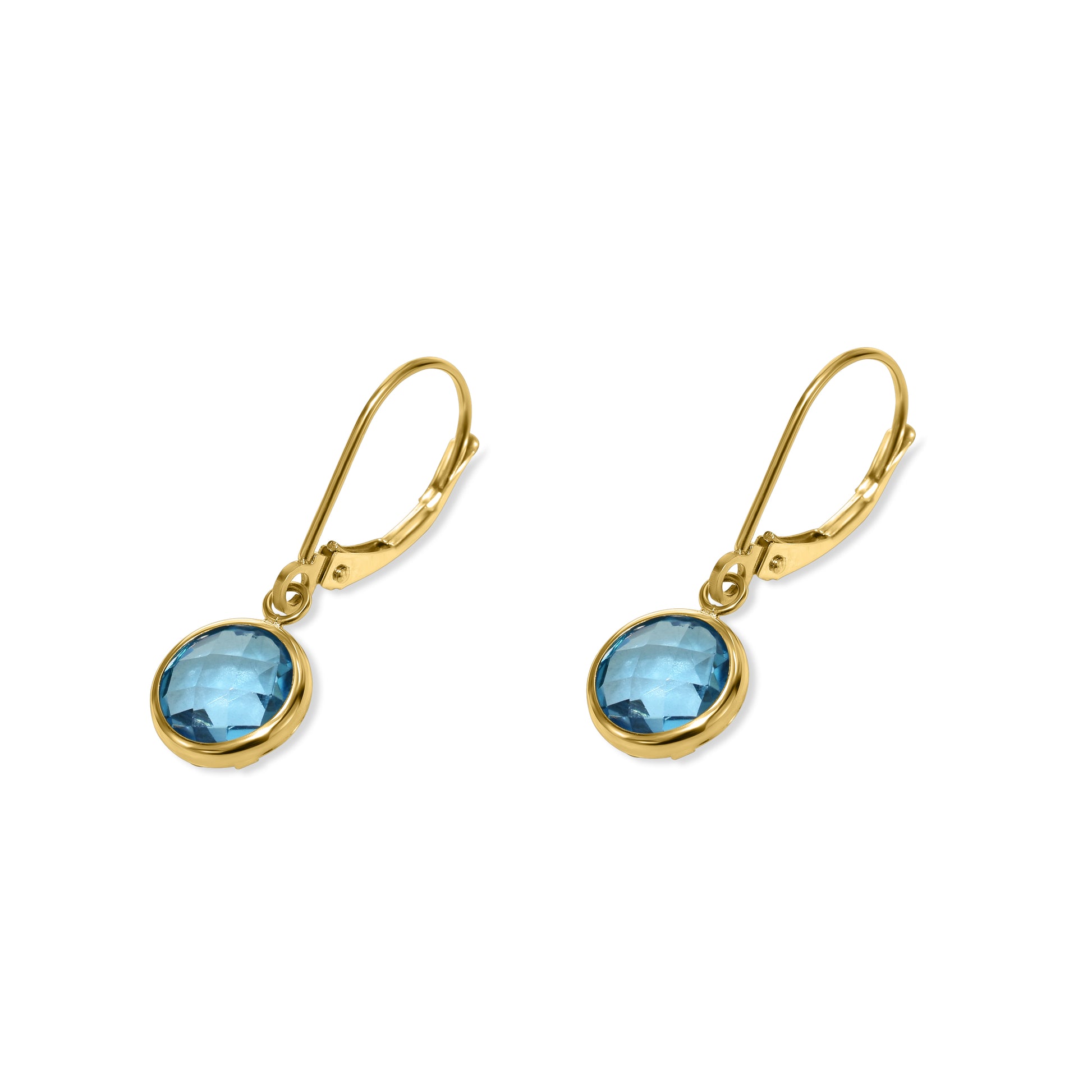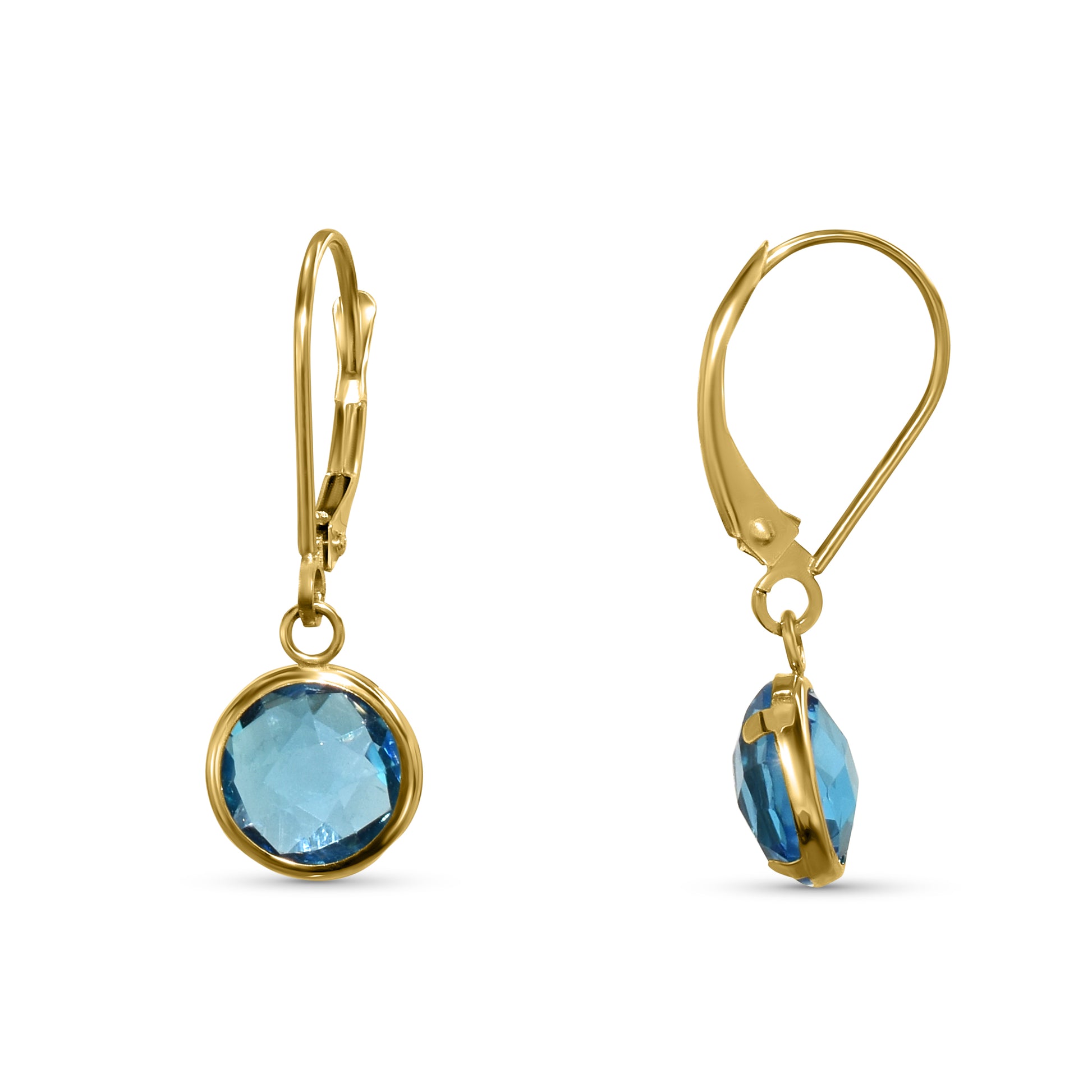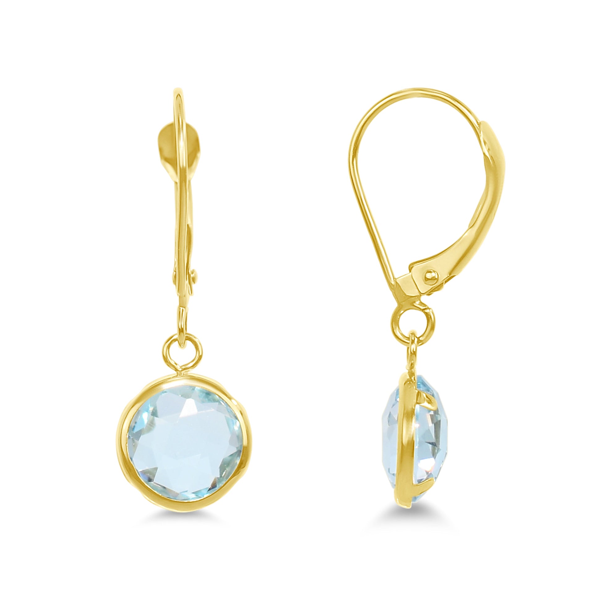 Delight your special someone with these 14k yellow gold back set bezel earrings. With a choice of gemstones, from Blue Topaz, Citrine, Amethyst, Garnet, White Topaz, these 8mm gems shine with a secure leverback closure. Show someone you care with these beautiful and unique earrings.